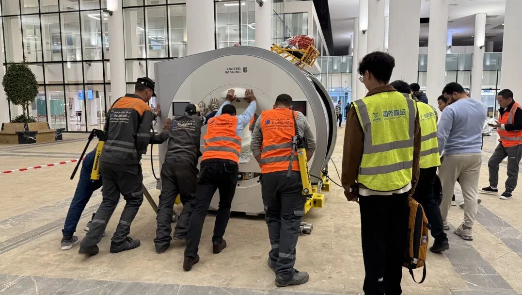在摩洛哥,国药嘉运工作人员顺利完成摩洛哥丹吉尔教学医院项目磁共振设备进场安装,为提升当地医疗卫生水平贡献力量。