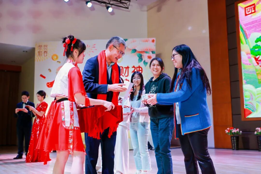 抽奖环节闪耀晚会,成为全场焦点。幸运奖、福气奖、新春奖轮番上阵,京东超市卡、周大福黄金饰品、华为最新款手机等丰厚奖品燃爆现场,员工热情高涨,欢呼声不断。集团执行董事蔡绍哲女士赞助的锦鲤大奖,不仅将晚会气氛推向沸点,更是寓意着新年的无限机遇与满满好运,在场的每一位员工都感受到了公司领导的关怀与祝福。