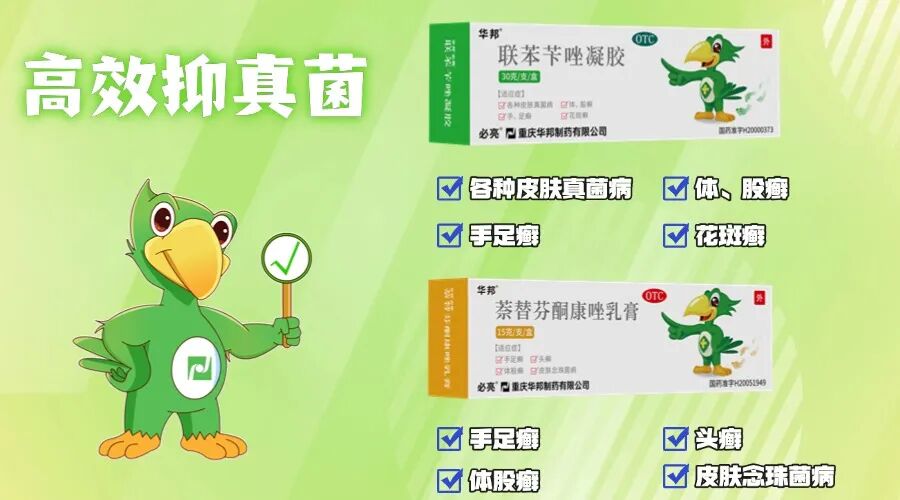 对于浅部感染,如马拉色菌引起的花斑癣,常见使用药膏包括华邦®必亮®联苯苄唑凝胶、华邦®必亮®萘替芬酮康唑乳膏等抗真菌外用药膏,以杀灭或抑制马拉色菌的生长。
