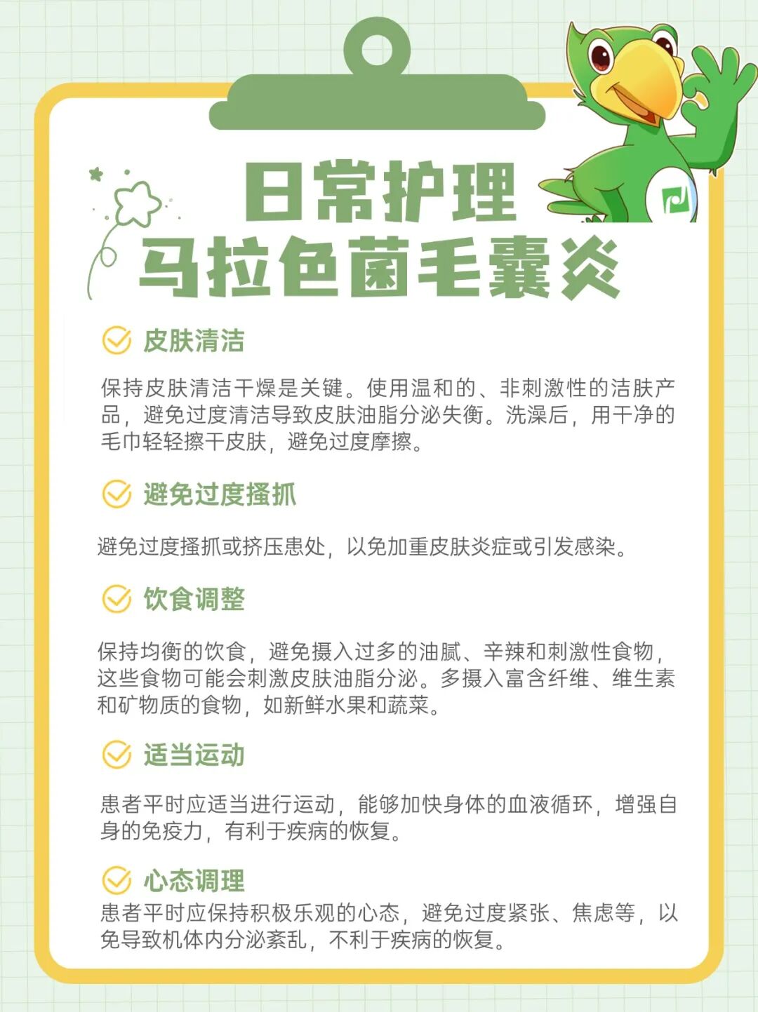 通过以上日常护理措施,可以缓解马拉色菌病的症状,促进疾病的恢复。同时,还应密切关注病情变化,如有需要,及时就医。