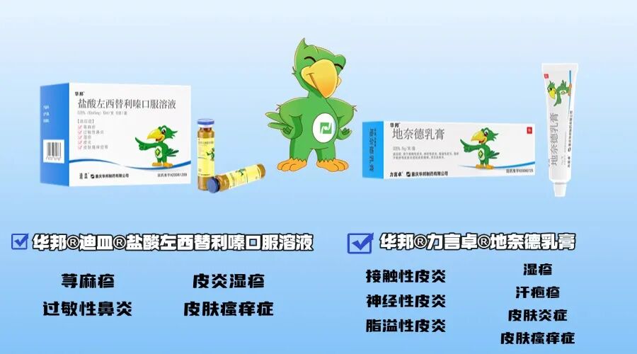 手部湿疹的治疗原则为抗炎、止痒,可口服抗组胺药如华邦®迪皿®左西替利嗪口服溶液等,外用药物可选用糖皮质激素乳膏如华邦®力言卓®地奈德乳膏等。