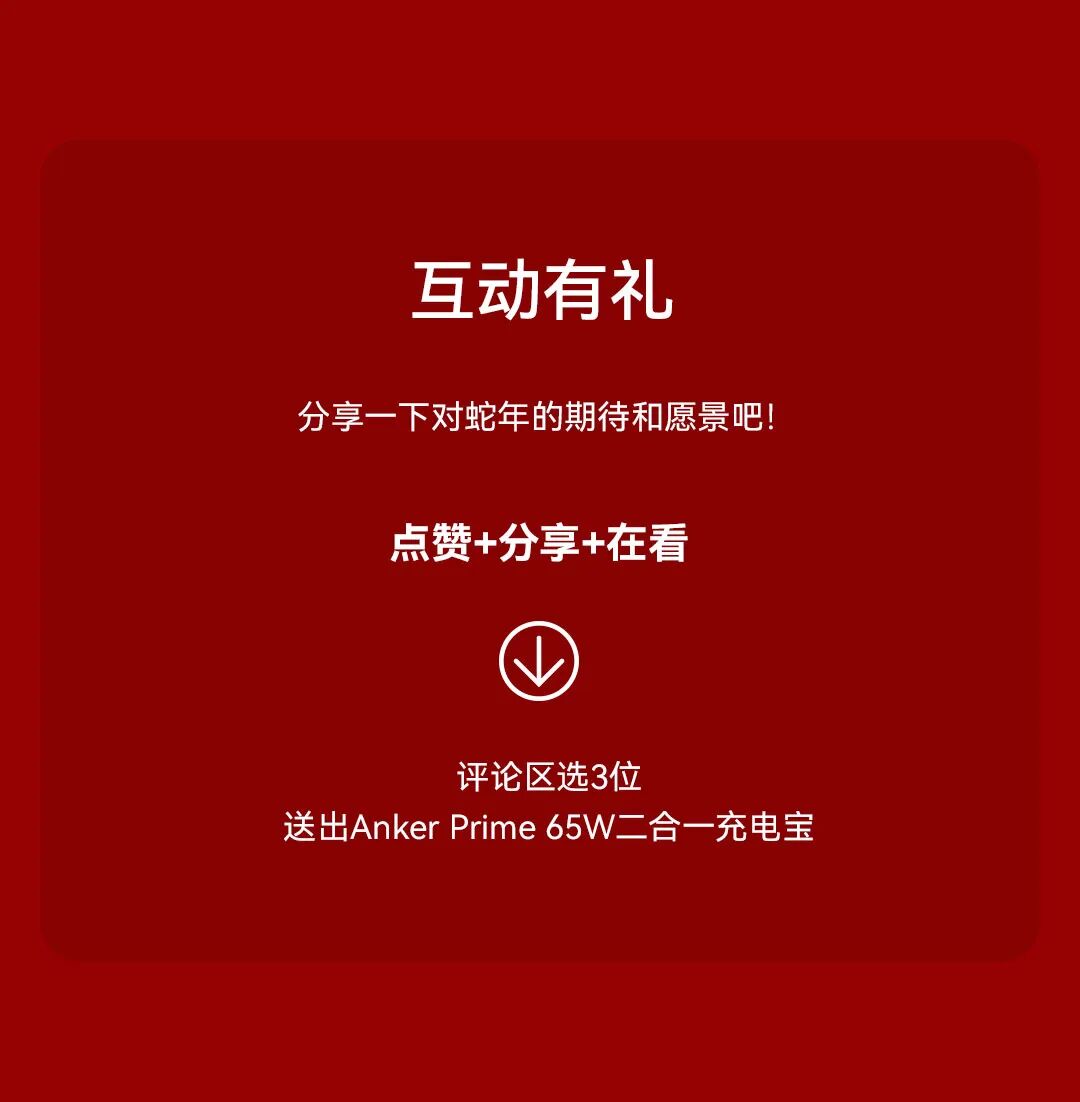 摘要:蛇年,安克送你满满祝福,有「蛇」必有得!