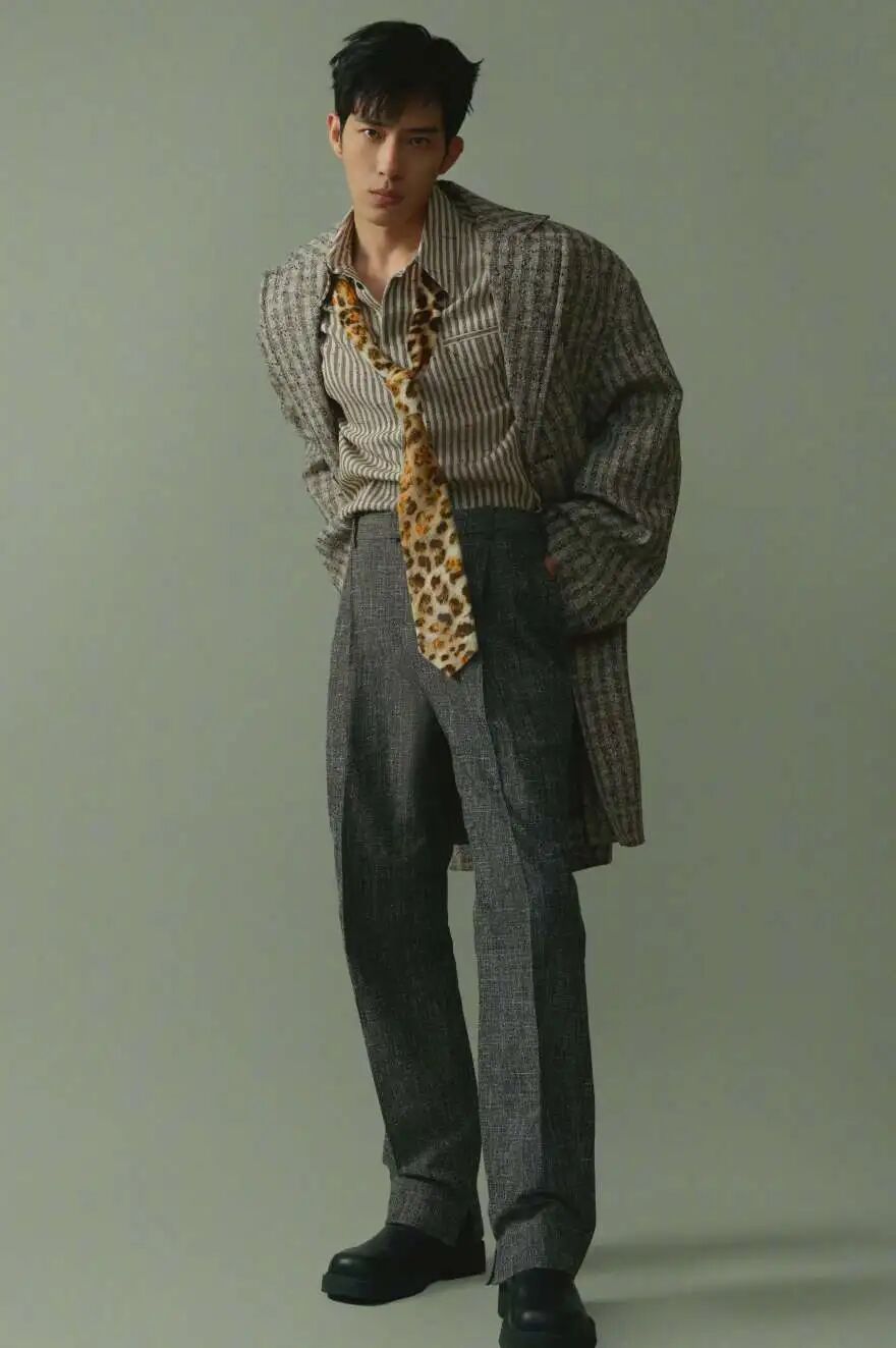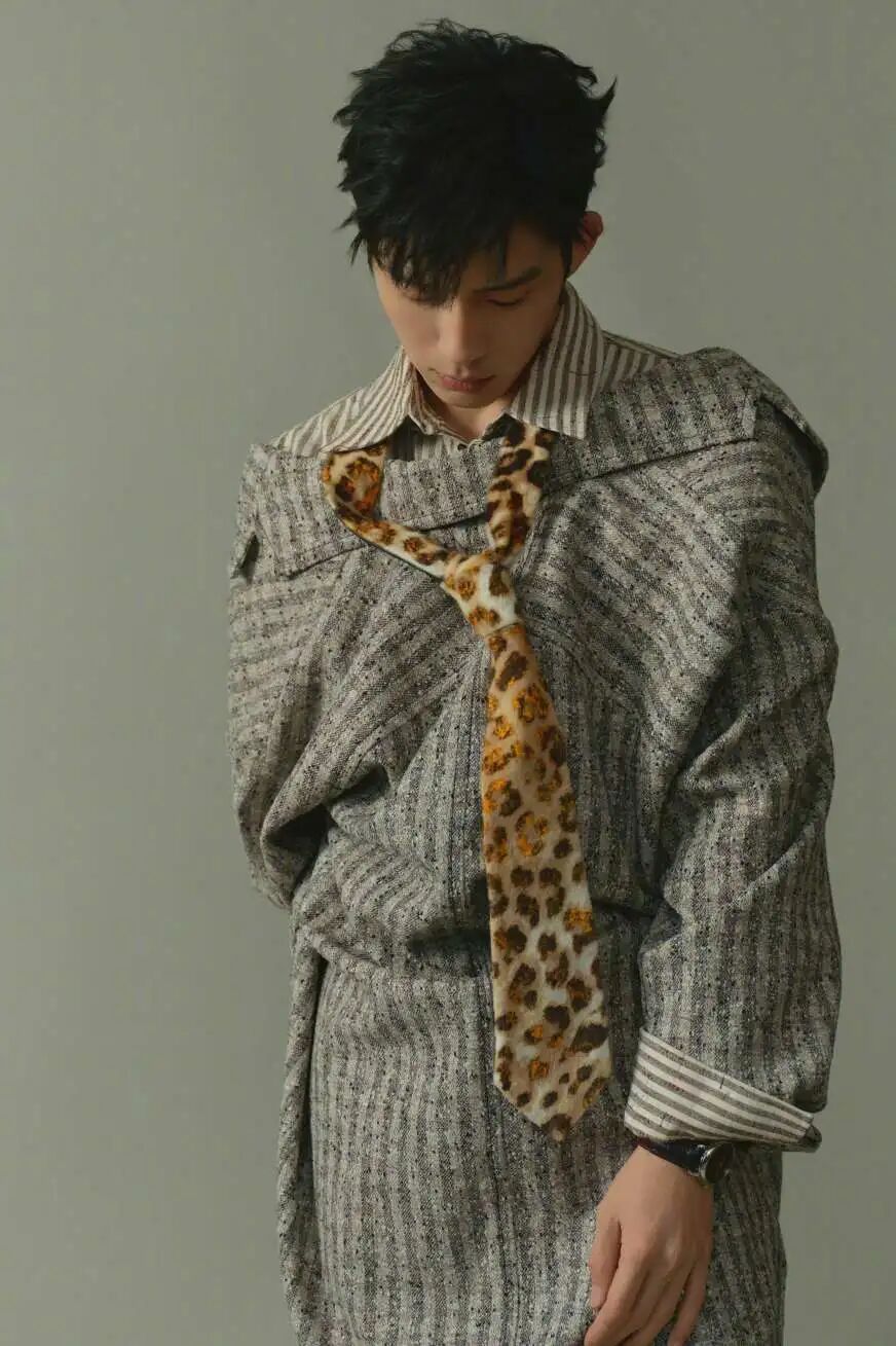 井柏然总能把基础单品演绎得很高级,挂在领口下的豹纹领带消弭了叠加条纹单品带来的枯燥nerd感,营造出叛逆朋克的迷人反差,上班下班两幅面孔任意切换🤟