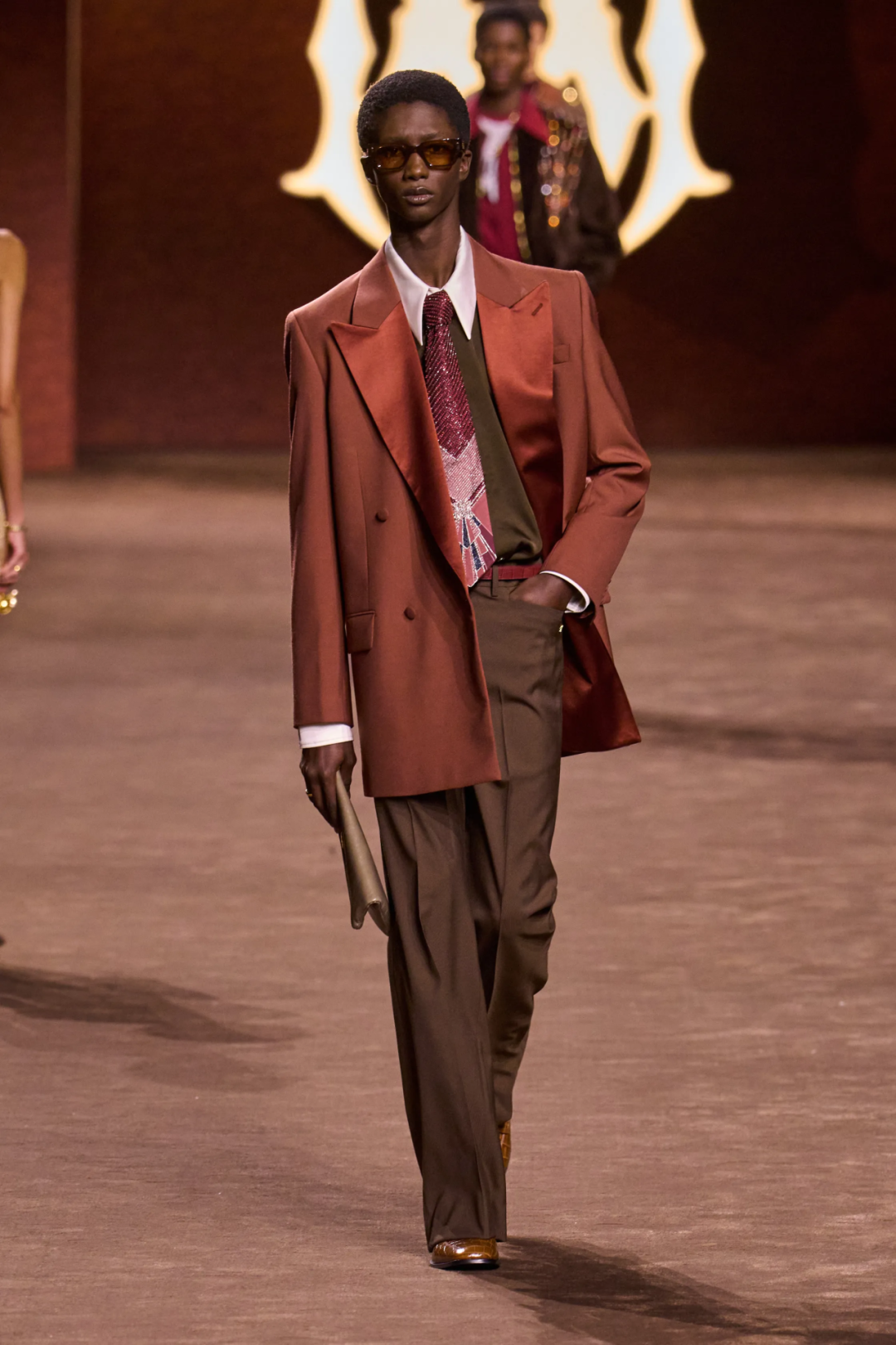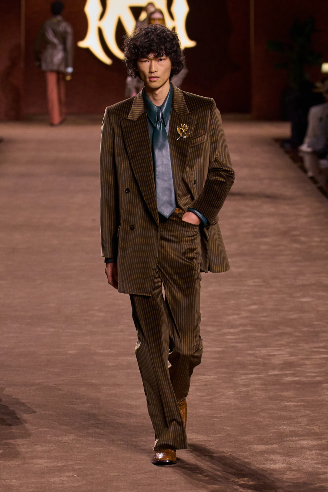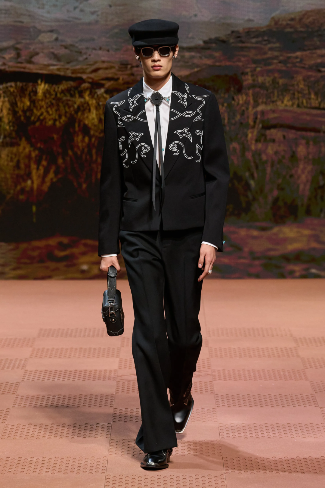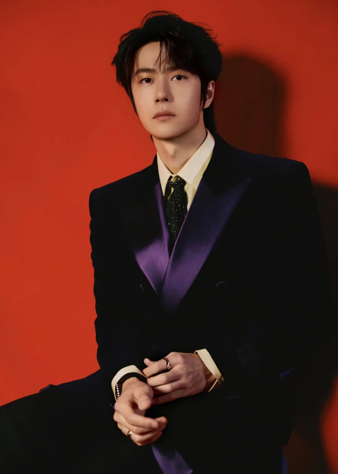同时可圈可点的还有这套“紫气东来”造型,闪钻领带的加入给整体注入活泼视感,不会过分老成又正式得恰到好处,在复古与摩登间收放自如。