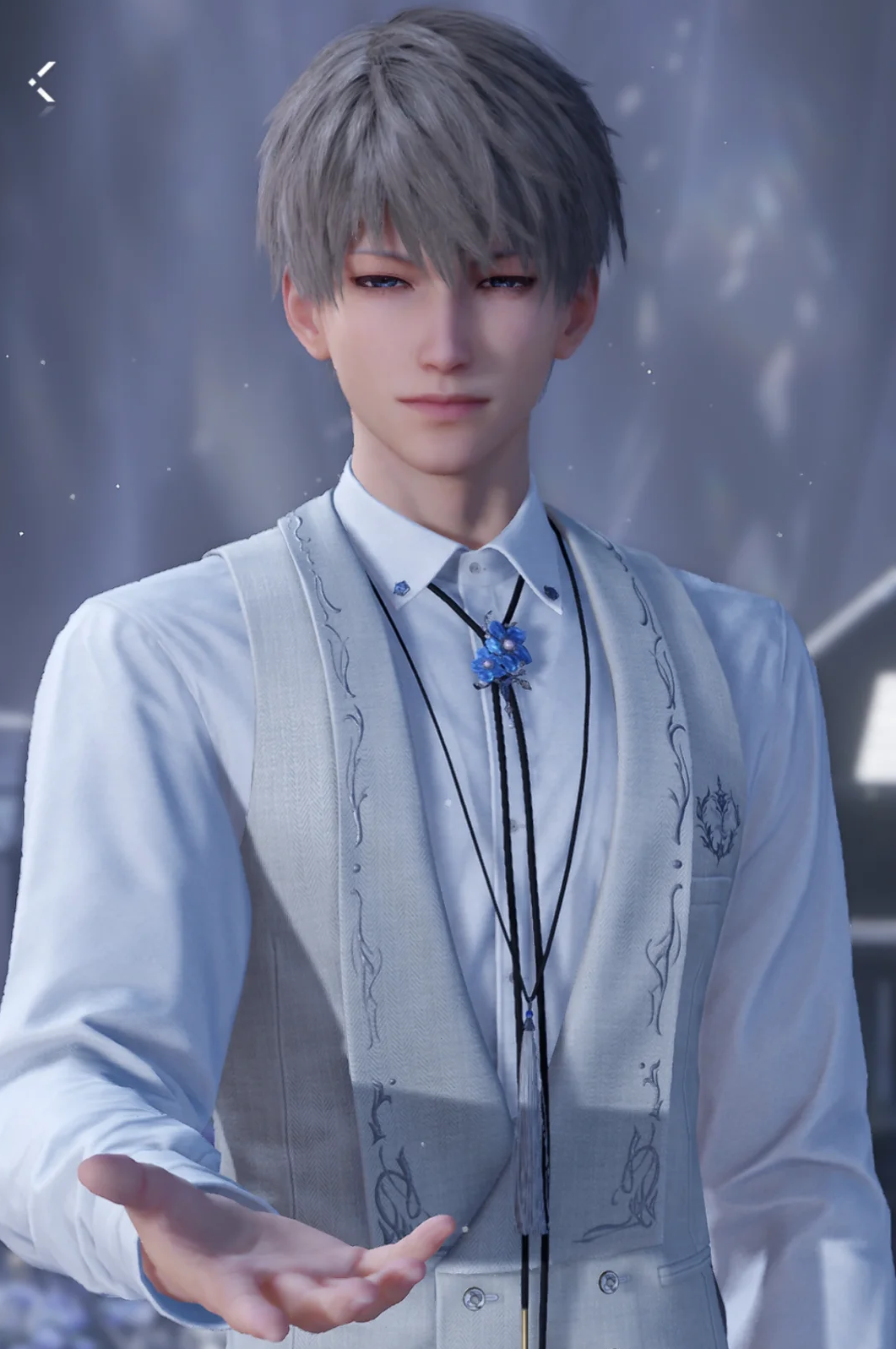 《恋与深空》的角色沈星回也有一条镶嵌星辰花的波洛领带,讨巧的花式随性又不失品味,优雅中还带着一点可爱。