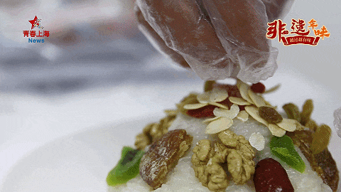 而接下来是八宝饭造型的重头戏。“这些是什么呢?”她看着七个盘子,有好几样她不认识的果料。而这些果料,其实就是用于八宝饭顶上的装饰,有蜜枣、核桃、金橘、猕猴桃果干、红枣、瓜子仁和葡萄干,这些和豆沙一起,合称八宝。