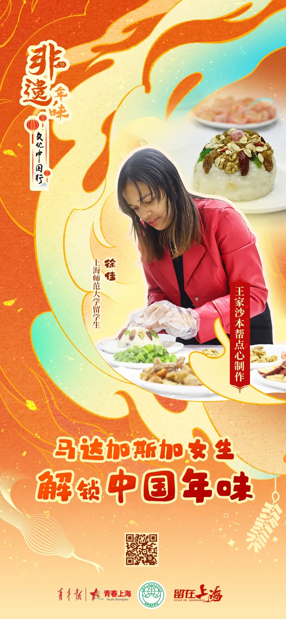 大家好~我是来自马达加斯加的留学生徐佳。有机会走入王家沙后厨,跟着点心师傅亲身体验王家沙本帮点心制作技艺我真的太开心了!快和我一起来品尝非遗味道吧!