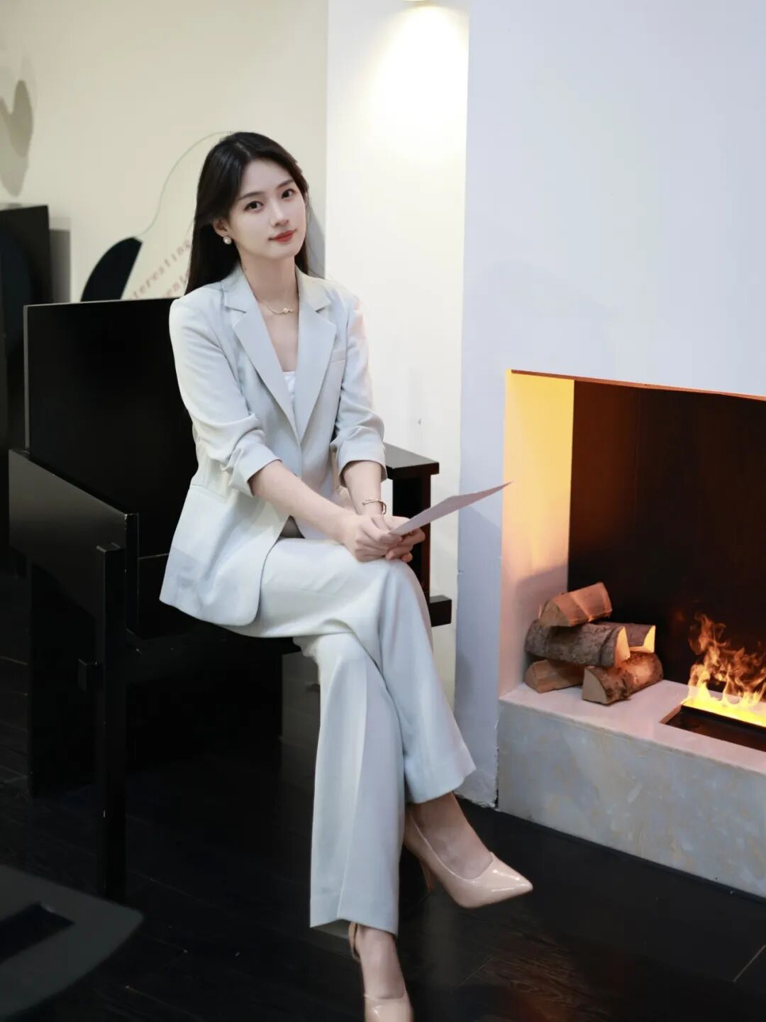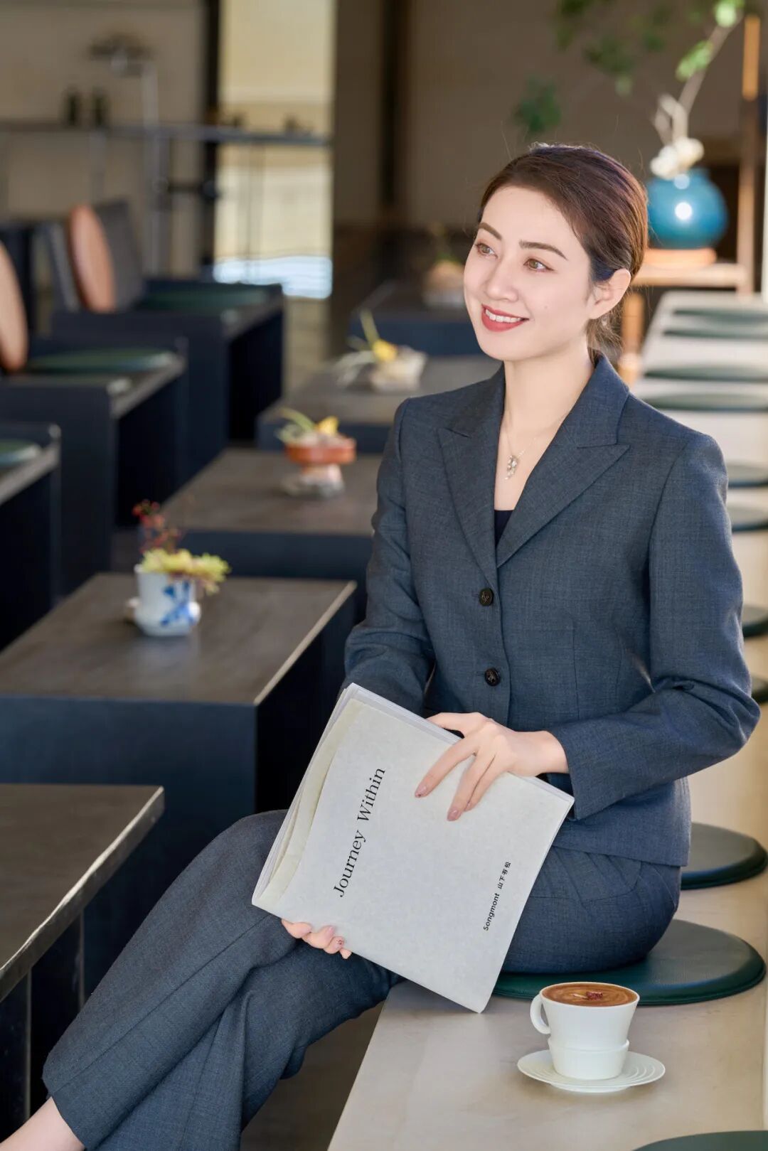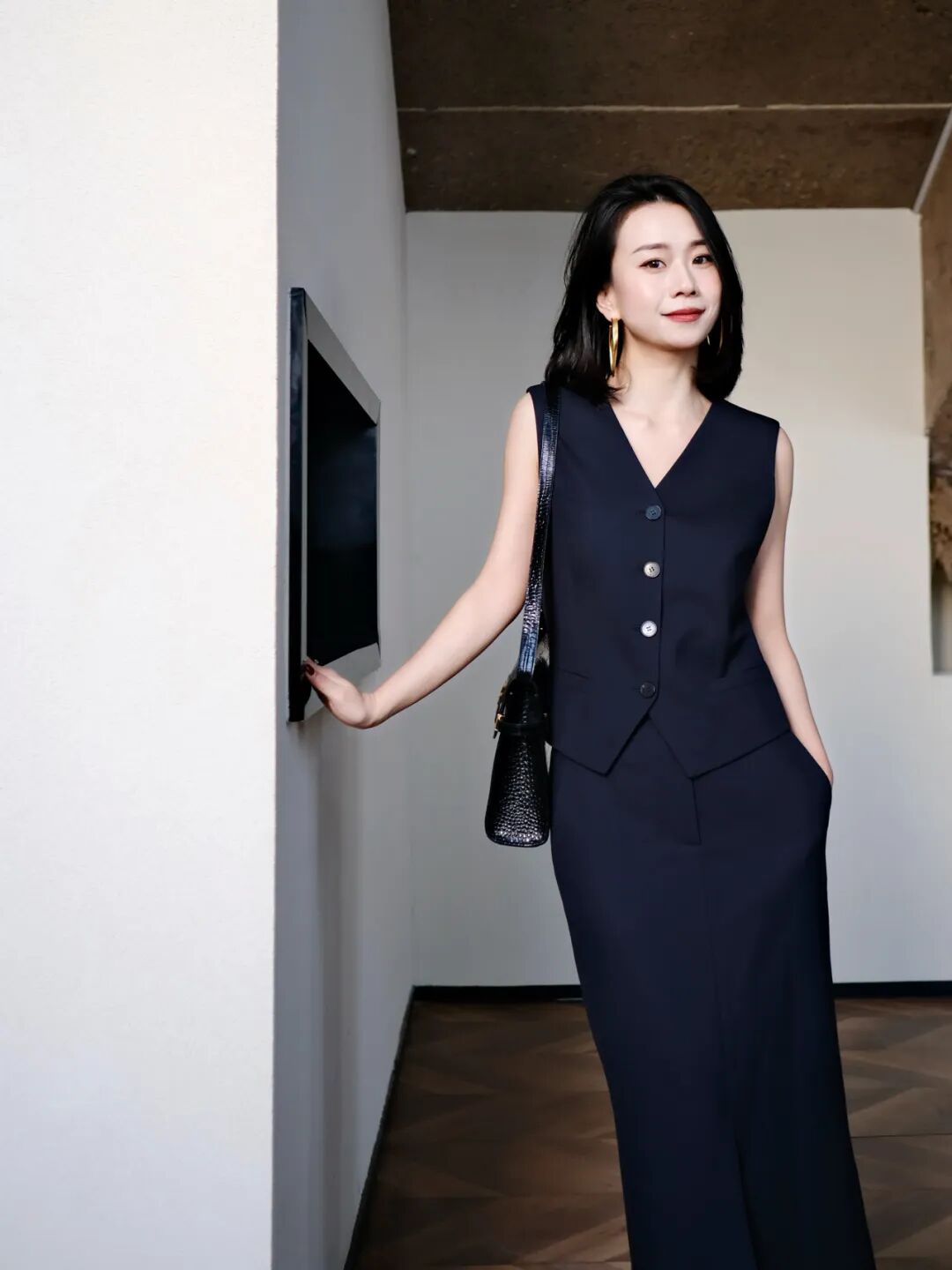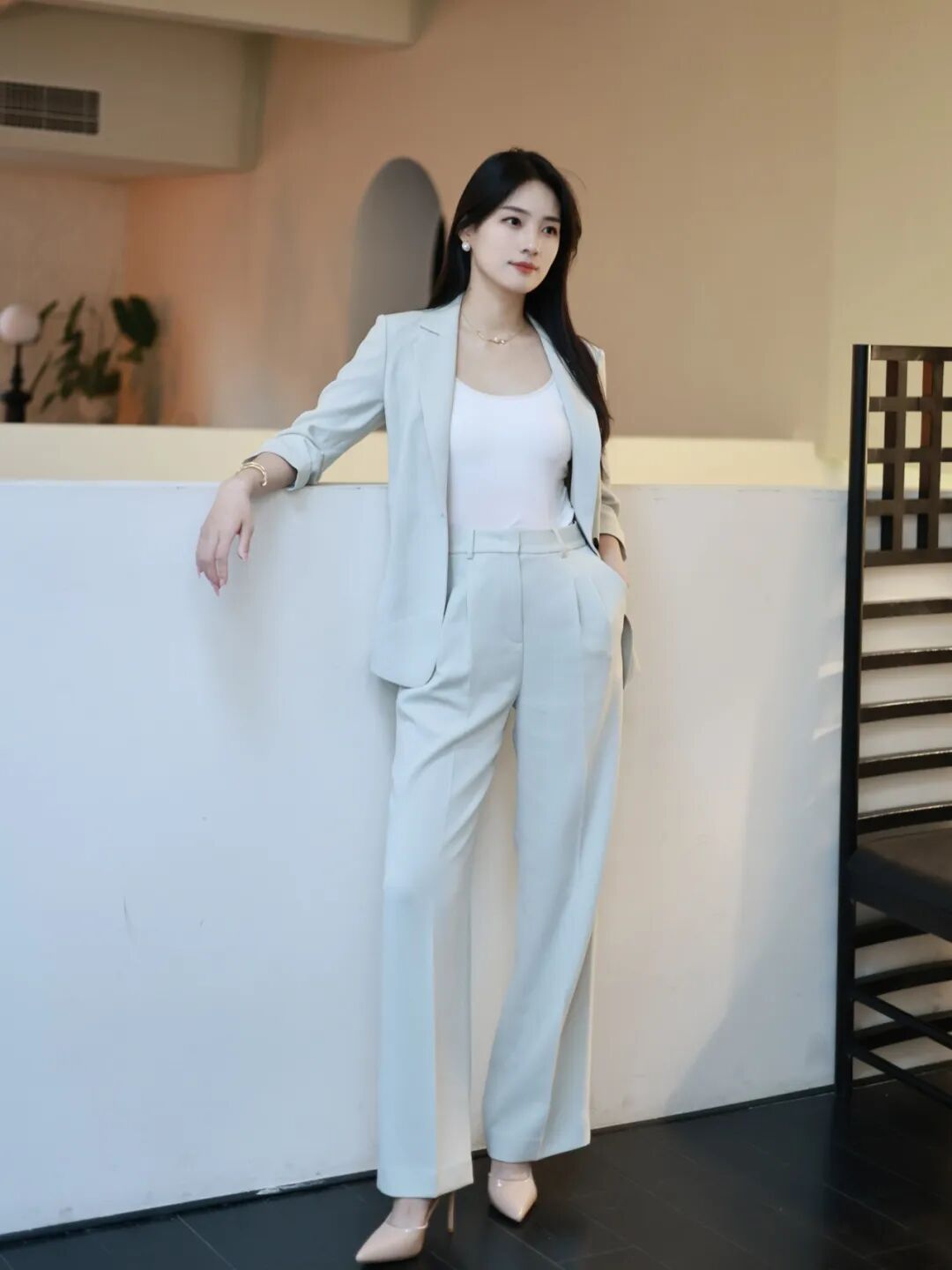 游刃于创作灵感与商业运作的相处之道,她更偏爱于着装中放入艺术思考。汲取国风文化色调,为简适自然的穿衣法则注入传统经典。以轻盈湖绿色消解西服套装的刻板印象,让艺术能量场加持创意灵感,以自适的状态与藏品对话,为审美赋以新意。