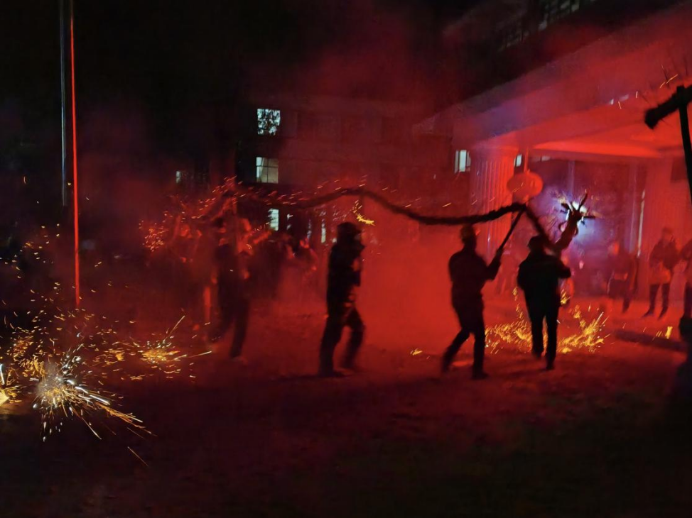 夜幕降临时,随着一声声三眼铳的轰鸣,鼓乐齐鸣,香火龙表演正式拉开了序幕。在游龙过程中,香火龙时而翻滚跳跃,时而盘旋起舞,在夜空中划出一道道痕迹。每当香火龙经过一户人家,村民们都会点燃鞭炮来迎接,结束后大家会扯龙香插在家中,祈愿家人平安。这一习俗据说源自唐高宗弘道年间的祭祀仪式,带着千年的古朴与庄重。