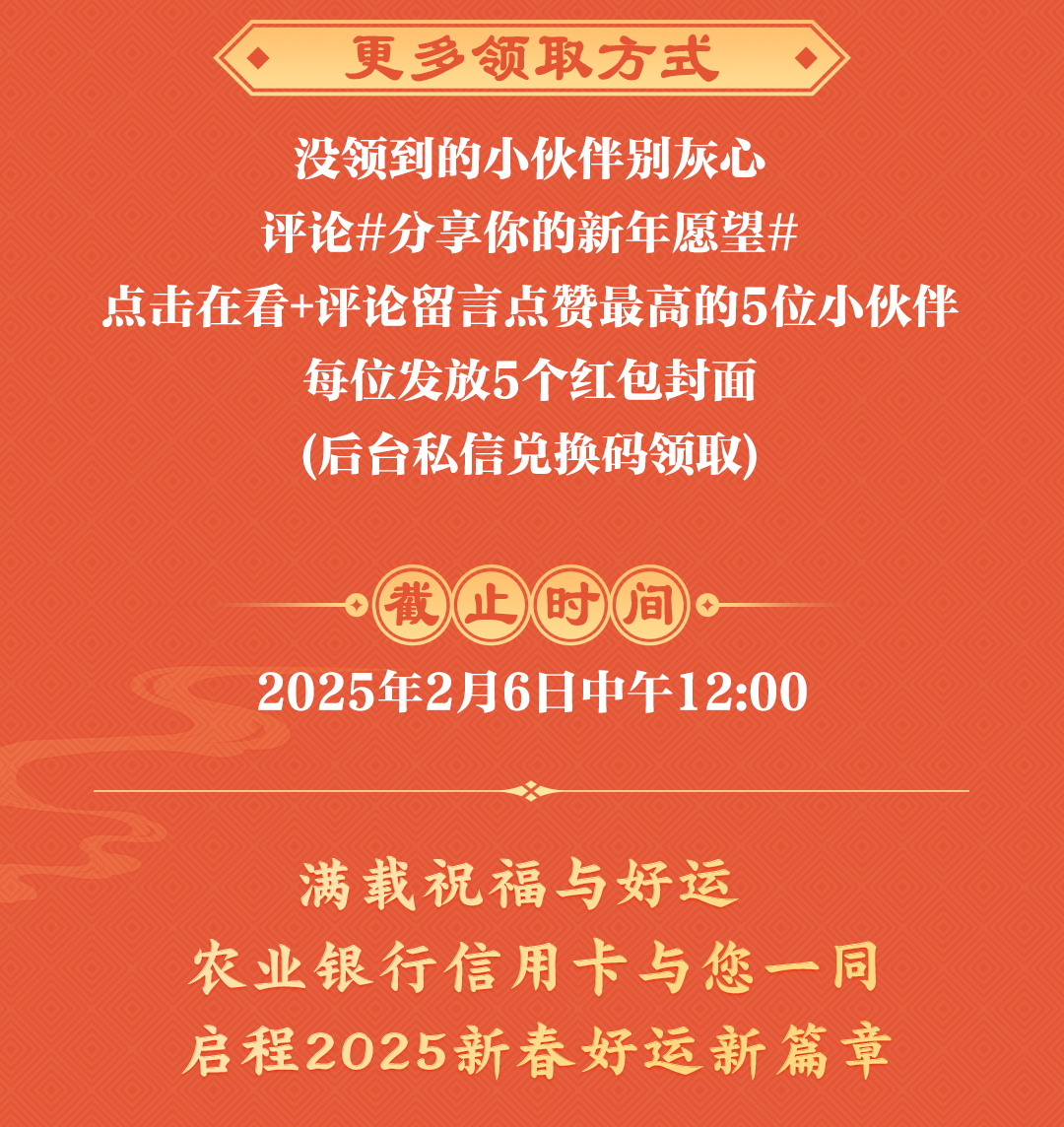 文章内容来源于公众号:农业银行信用卡,点此可查看原文,内容版权归相关企业所有,本网站仅供交流学习。若涉及版权问题或存在侵权情况,请及时与我们联系,我们将第一时间进行删除处理。