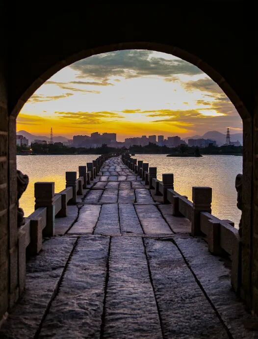 石桥跨江接海,气势磅礴