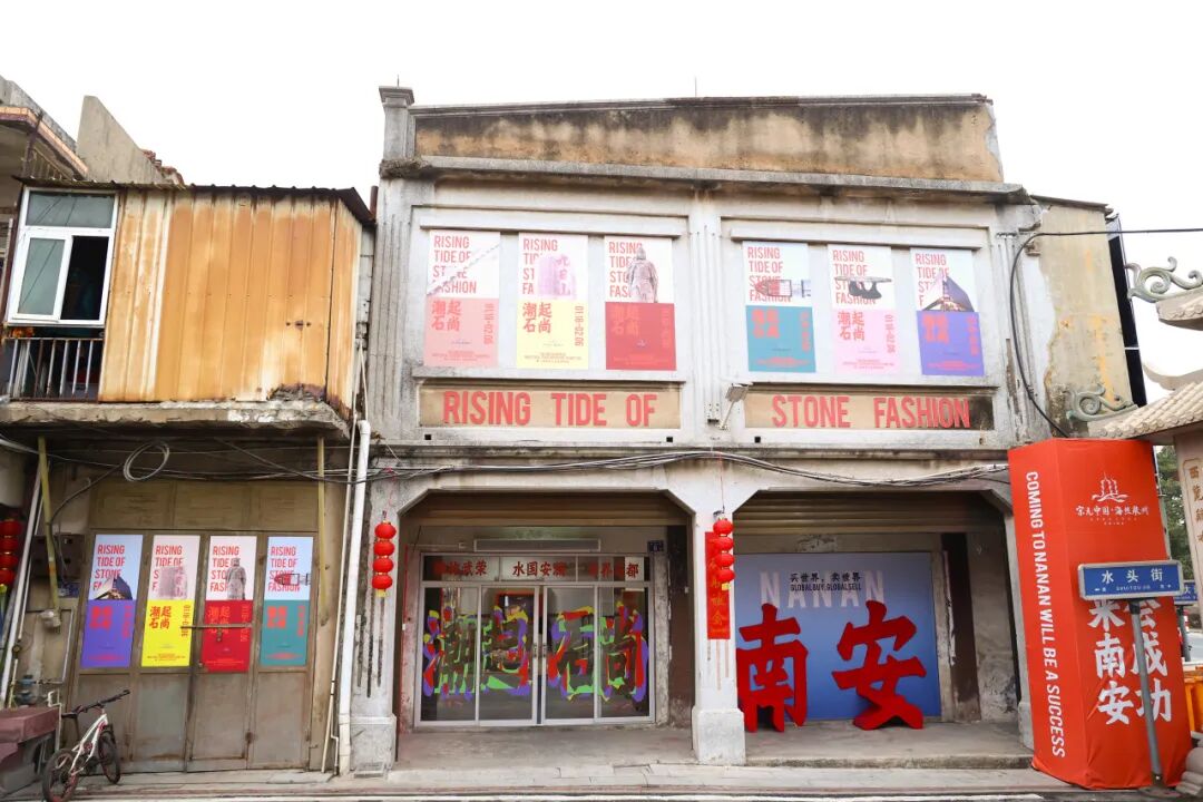 本次展览以“潮起石尚”为主题,以“石韵悠长”、“水立潮头”、“成功石尚”三大章节为线索,集文献、设计、互动于一体,深入探讨南安“石”事以呈现“成功南安”的盛景。同时展览延伸至水头街上,以“街道即展场”为核心理念,将水头街的烟火生活化身成为新潮展场。设置“石来运转”转盘、“南安”文字街道家具、出海镜面装置等各类打卡点,通过展览海报的视觉置入水头街的各个角落,同在地居民生活场景融为一体,由此开启一场城市更新的在地实践。
