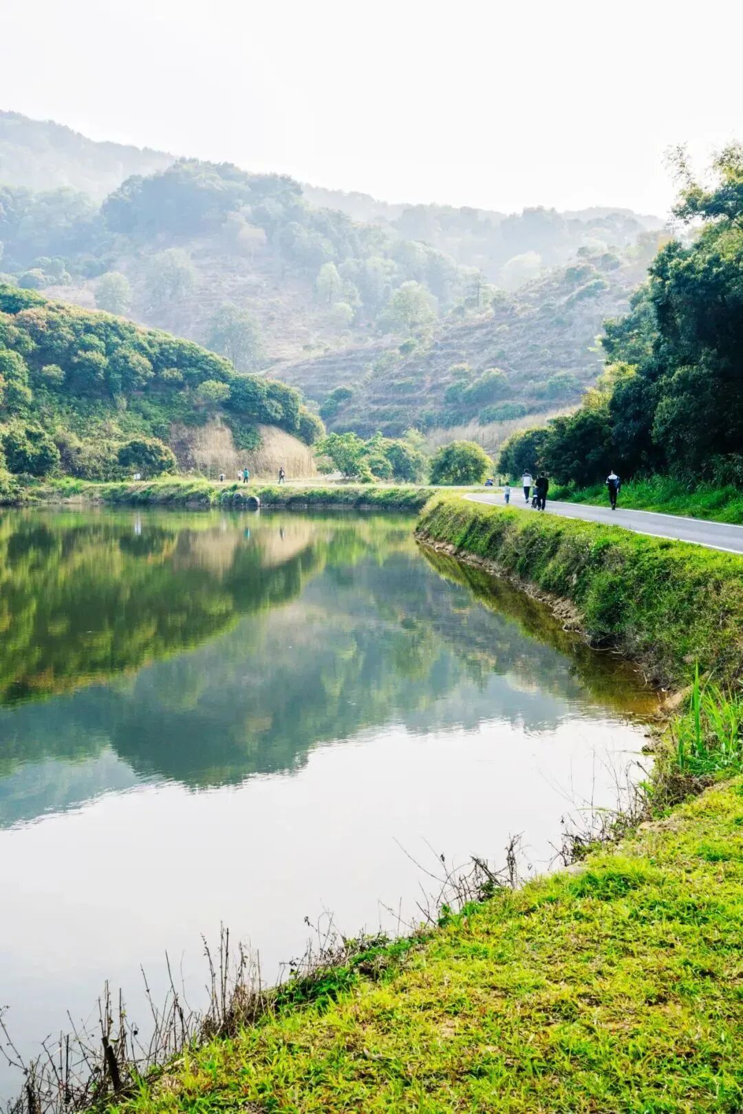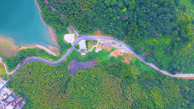 远山青黛、云雾缭绕、环湖碧道