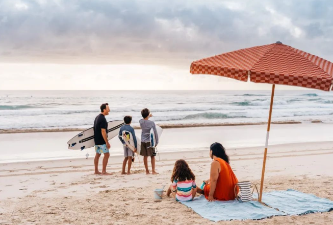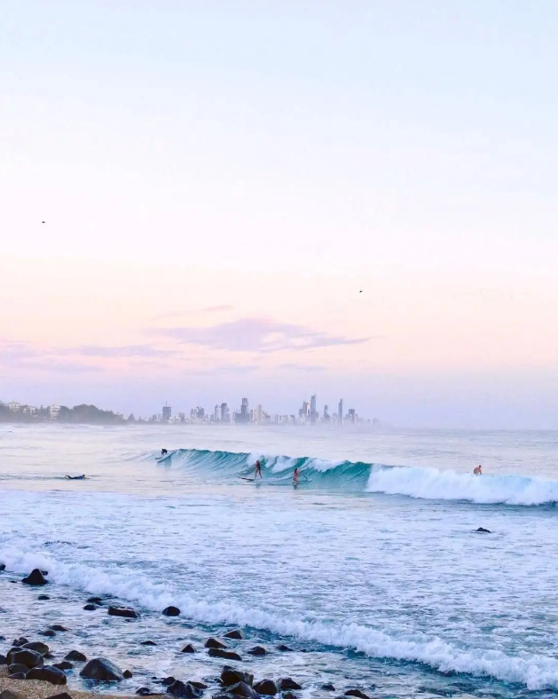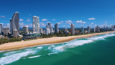 黄金海岸因其绵延57公里的黄金沙滩而闻名,其中冲浪者天堂海滩以其优质的冲浪条件和繁华的城市景观而著名。