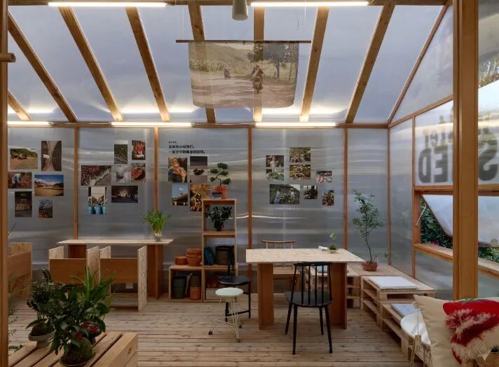 waterSHED是位于上海上生新所coffea SHED门店内的活动展览空间,面积41平方米。空间的灵活性及用途的多功能性是waterSHED的关键特征。整个空间结构简洁明朗:杉木条搭接在场地已有的金属波浪板上以混合材料构成空间的顶棚骨架。
