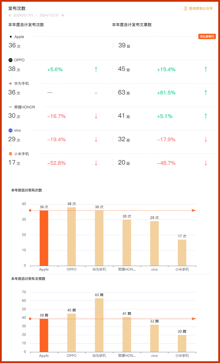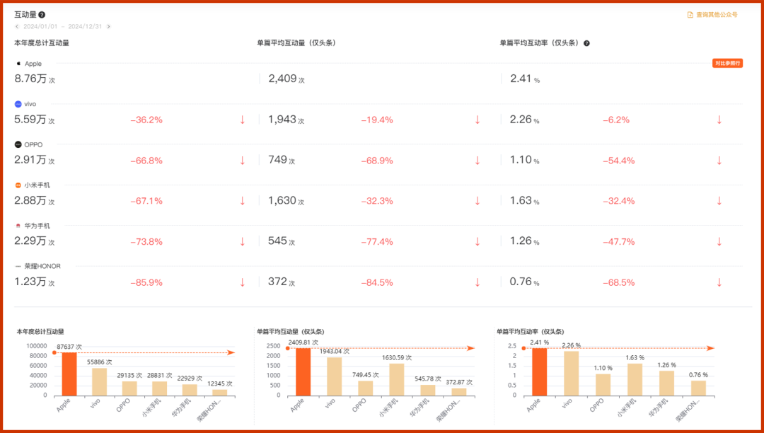 *本文以「Apple」账号为基准进行对比分析,报告通过公开渠道的数据整理生成。