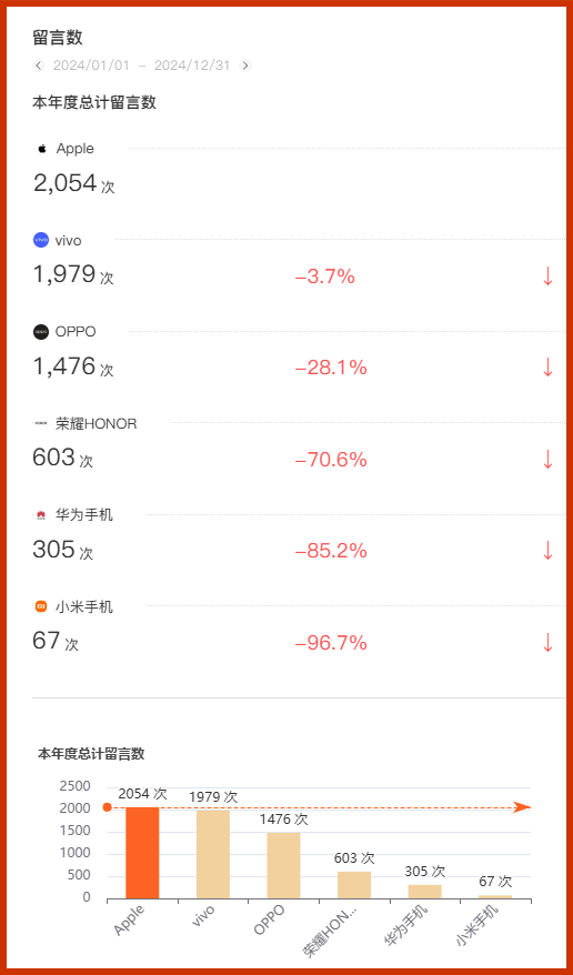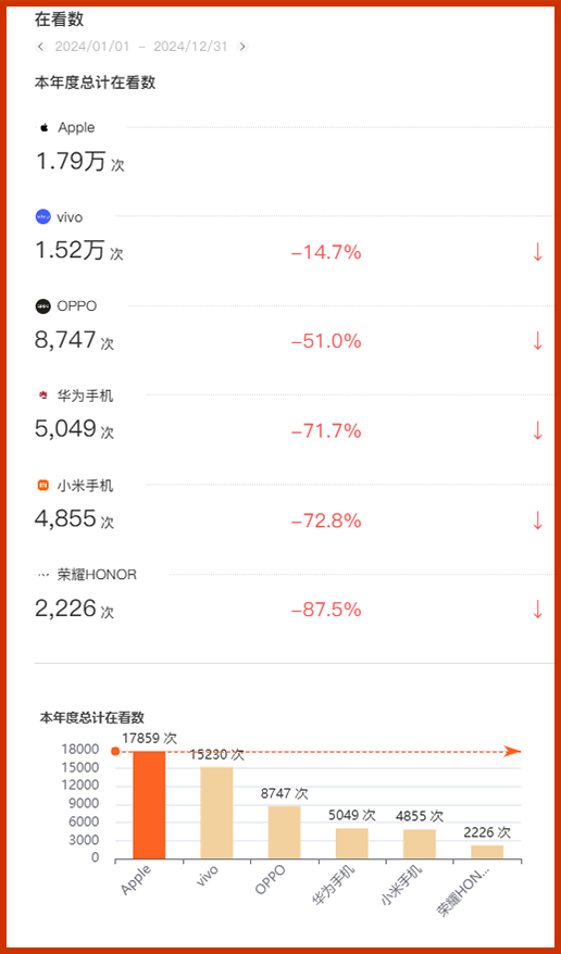 以下是小幂书(misum.cn)生成的Apple、华为、小米、OPPO、vivo和荣耀这6大手机品牌2024年公众号的数据对比分析,一起来研究学习下吧。