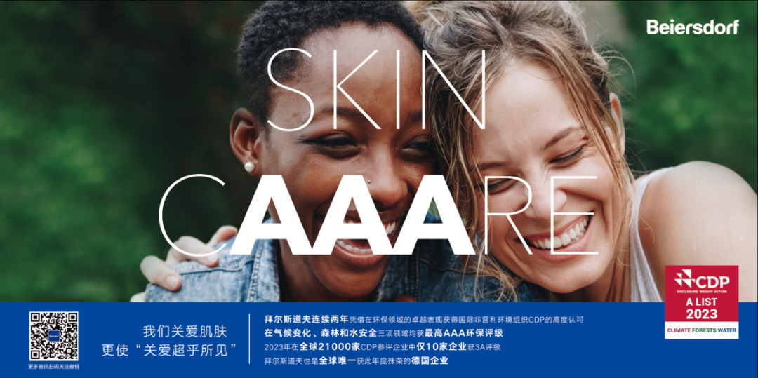 在过去的两年间,拜尔斯道夫不仅在中国取得了显著成就,在国际上也获得了高度认可。2023年,拜尔斯道夫连续两年荣获非营利组织CDP颁发的最高“AAA”评级,成为全球仅有的13家企业之一,在气候保护、水资源管理和森林保护三个关键领域均获得顶级评价。这一成就不仅肯定了拜尔斯道夫在可持续发展方面的长期努力,也标志着其在全球范围内作为行业标杆的地位。