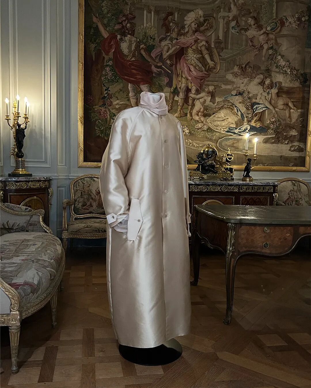 Carven宣布参加卢浮宫展览《Louvre Couture–Objets d'Art,Objets de Mode》,展览于1月24日在巴黎揭幕,持续至7月21日。2025春夏系列的第10个造型一件浅金褐色高定缎面插肩袖大衣,内衬透明棉质欧根纱,展立于卡纷夫人捐赠给卢浮宫的家具之间。该展览由Olivier Gabet策划,系卢浮宫历史上首次举办以时装为主题的展览。
