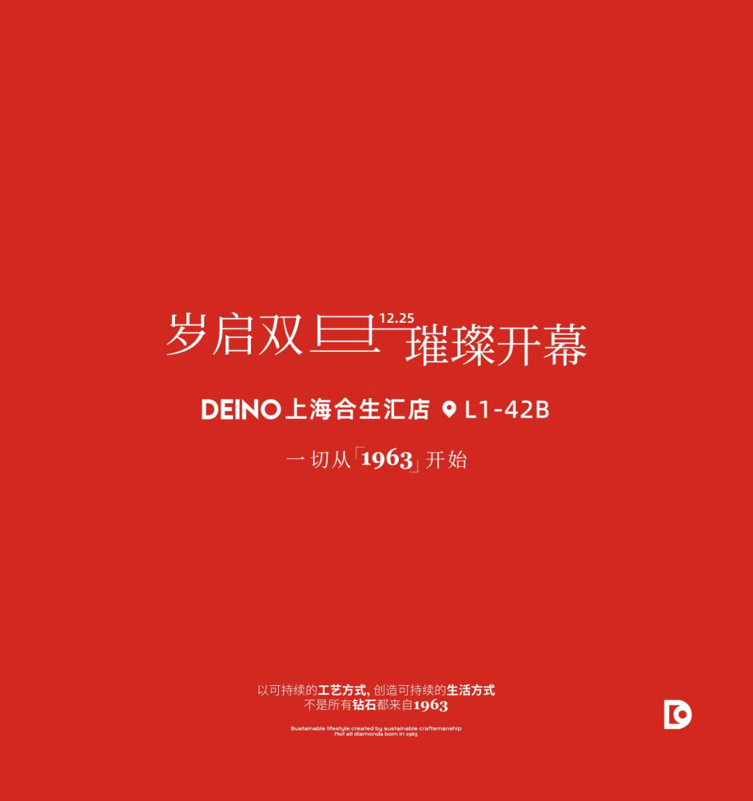 12月25日,国机金刚石(河南)有限公司旗下可持续时尚珠宝品牌DEINO在上海五角场合生汇的全国第二家门店隆重开业。这一举措不仅是培育钻石行业向零售市场拓展的重要一步,也标志着这一致力于可持续时尚的品牌达到了新的发展高度。