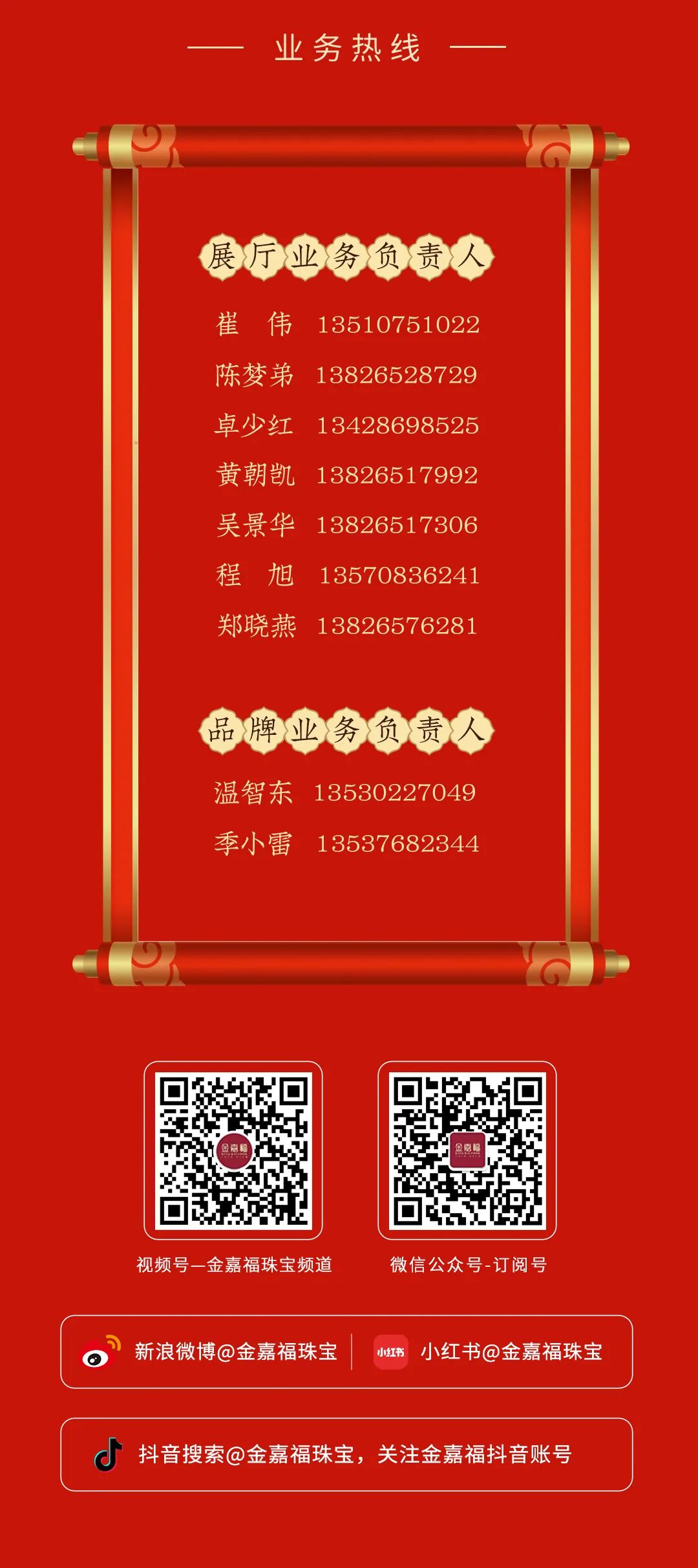 文章内容来源于公众号:金嘉福珠宝频道,点此可查看原文,内容版权归相关企业所有,本网站仅供交流学习。若涉及版权问题或存在侵权情况,请及时与我们联系,我们将第一时间进行删除处理。
