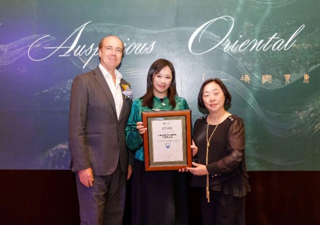 广州太古汇获得2000天零损失工时事故奖,为太古地产旗下首个取得连续2000天零损失工时事故成就的项目。图为太古地产行政总裁彭国邦(左一)与太古地产高级顾问郝唐惠莉(右一)向广州太古汇总经理黄瑛(中)颁发“2000天零损失工时事故奖”