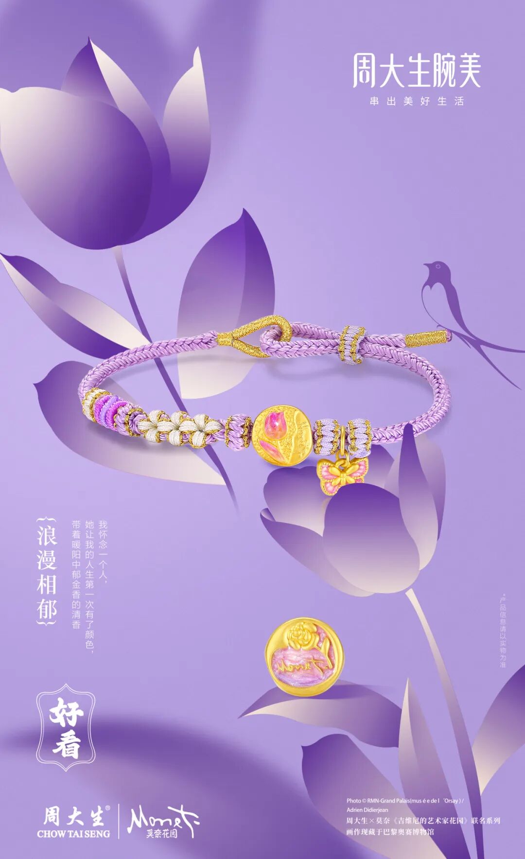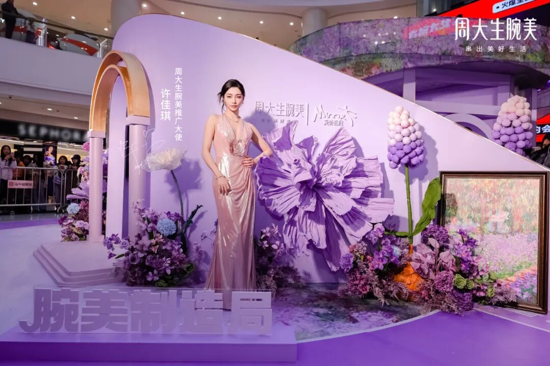 许佳琪特别提到,她选择的首饰灵感来源于莫奈画作中的花卉元素,如鸢尾花、玫瑰花等,这些浪漫色彩与珍珠的点缀相得益彰,展现出了独特的艺术风情和法式浪漫。这一穿搭理念与周大生腕美的“好看好玩好运,串出美好生活”理念不谋而合,共同诠释了美好生活的真谛。