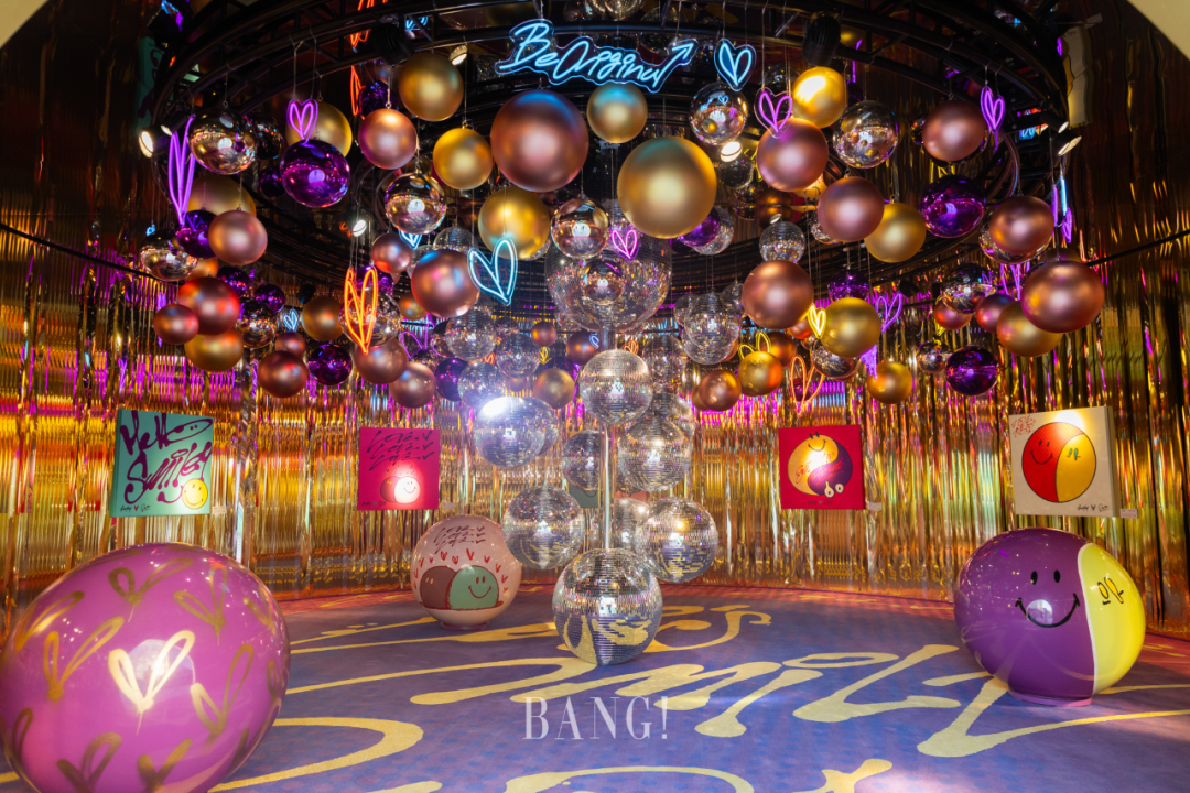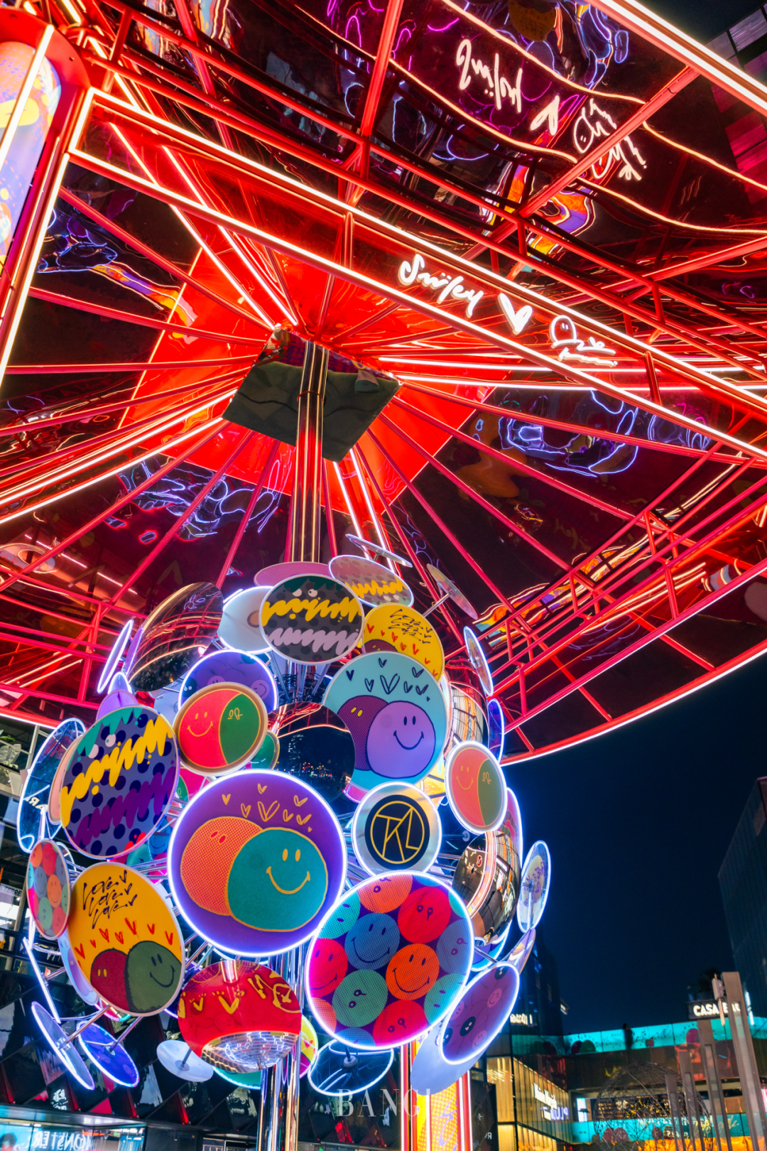 镜面元素在光线的轻抚下,使SMILEY 的经典笑脸与神山隆二充满个性的创意在此完美融合,宛如一面面通往奇幻世界的魔法之镜。