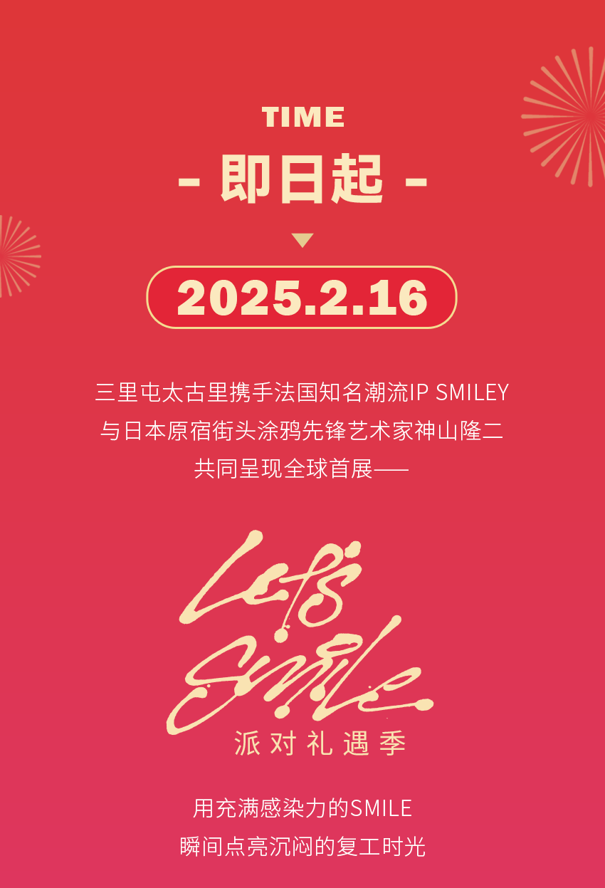 春节假期之后,三里屯太古里依旧洋溢着喜庆与温馨,以“Let's Smile”为主题的派对礼遇季,将欢乐与祝福延续。