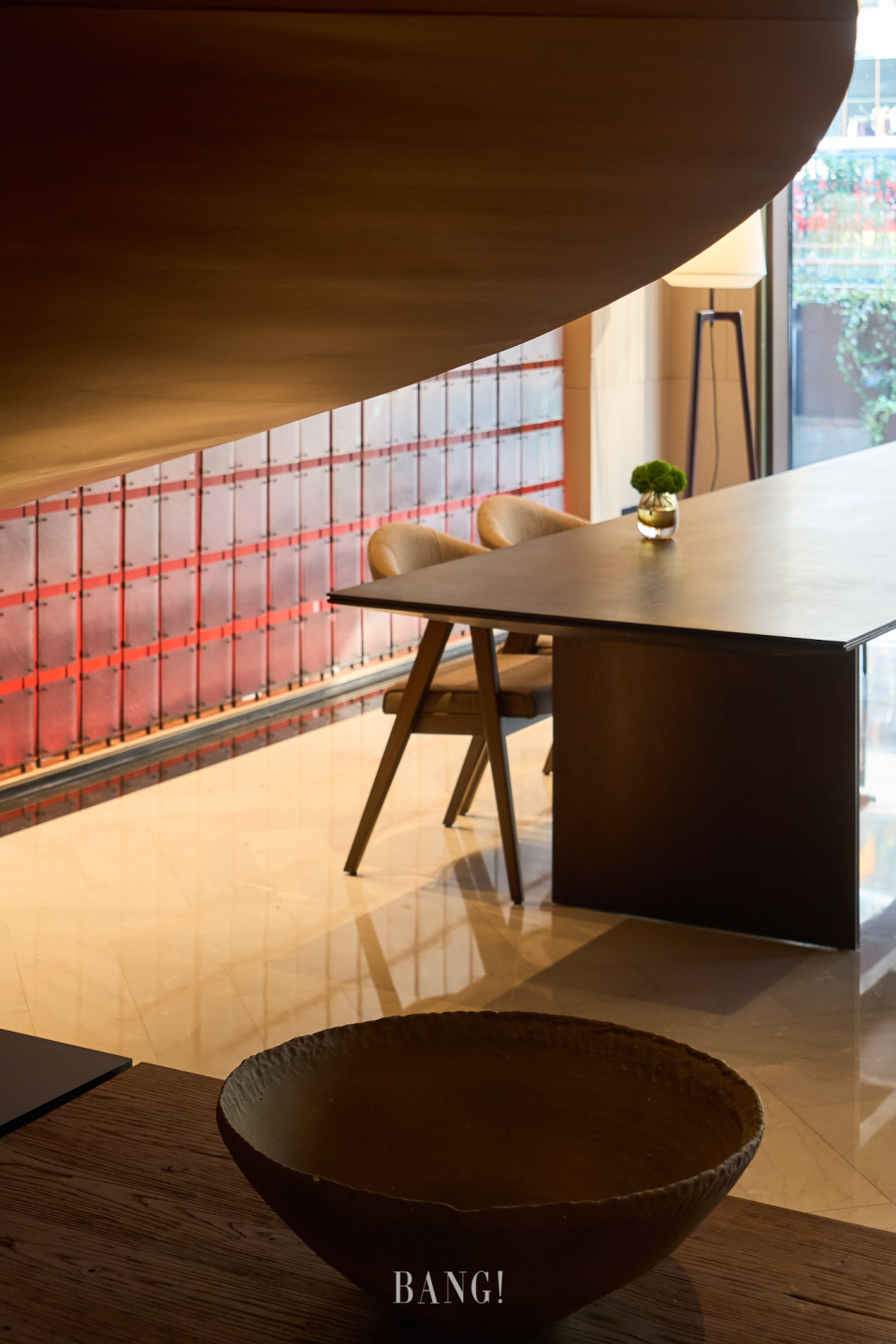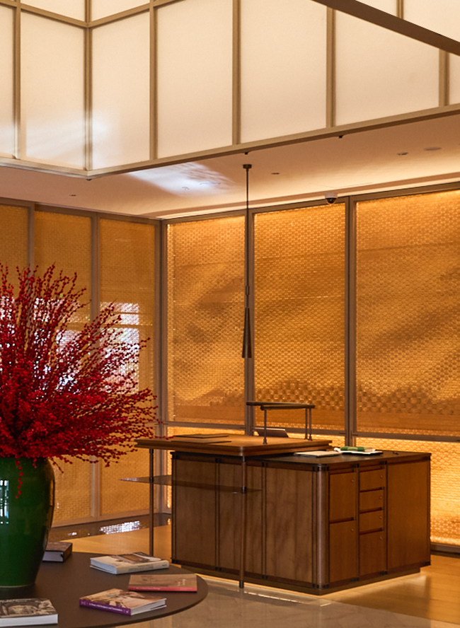 抵达酒店的瞬间,大堂设计中属于金陵城的独特美学,便让我们眼前一亮。城墙的沉稳砖石,秦淮河的涟漪,以及梧桐叶的树枝,汇成充满格调的视觉风格。