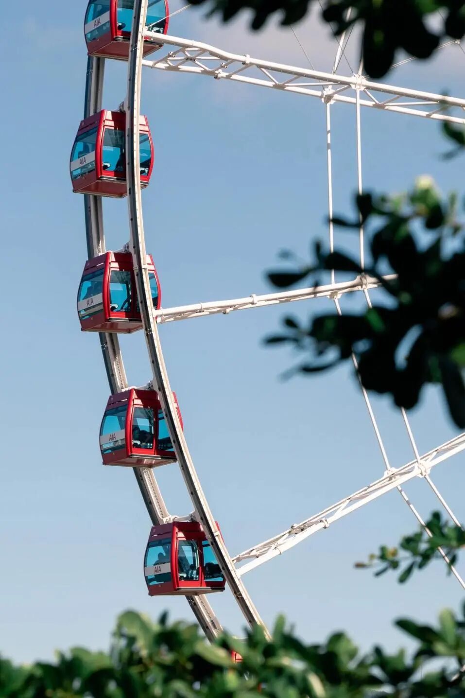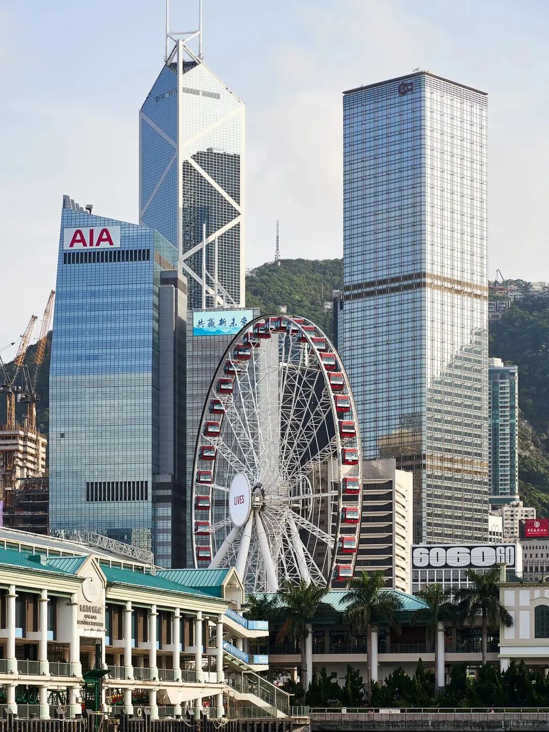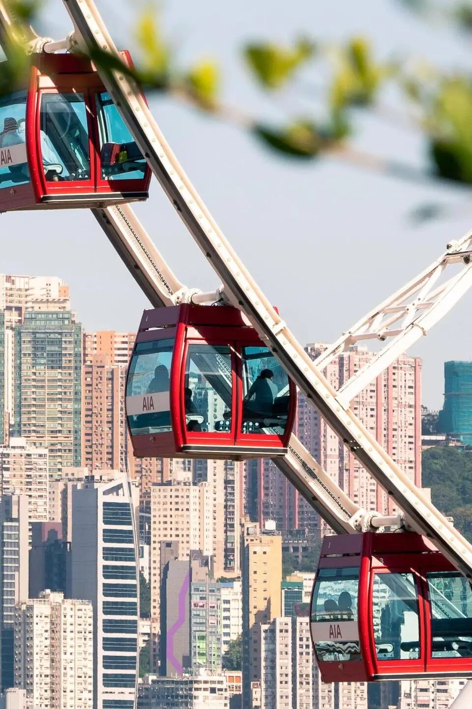 想要捕捉摩天轮的完美身影?推荐前往中环9/10号码头旁,那里的石墩与栏杆是拍摄摩天轮的绝佳机位,或是站在摩天轮正前方,采用仰拍手法,将整个摩天轮尽收眼底。
