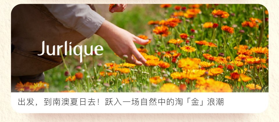 文章内容来源于公众号:茱莉蔻Jurlique,点此可查看原文,内容版权归相关企业所有,本网站仅供交流学习。若涉及版权问题或存在侵权情况,请及时与我们联系,我们将第一时间进行删除处理。