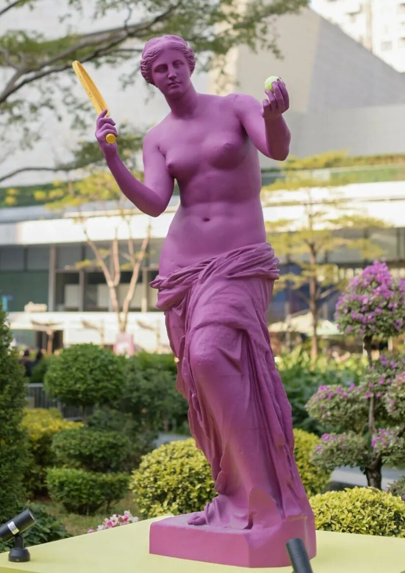 “每一位维纳斯雕像都与彩虹的一种颜色相呼应,象征着平等权利和反对歧视。”这一系列用丙烯酸树脂精心雕刻的女性雕像,手持各自运动象征物,挑战了体育传统中“男性主导”的观念,彰显了艺术与体育之间对自我极限的不断超越,成为两者和谐共生的美丽颂歌。