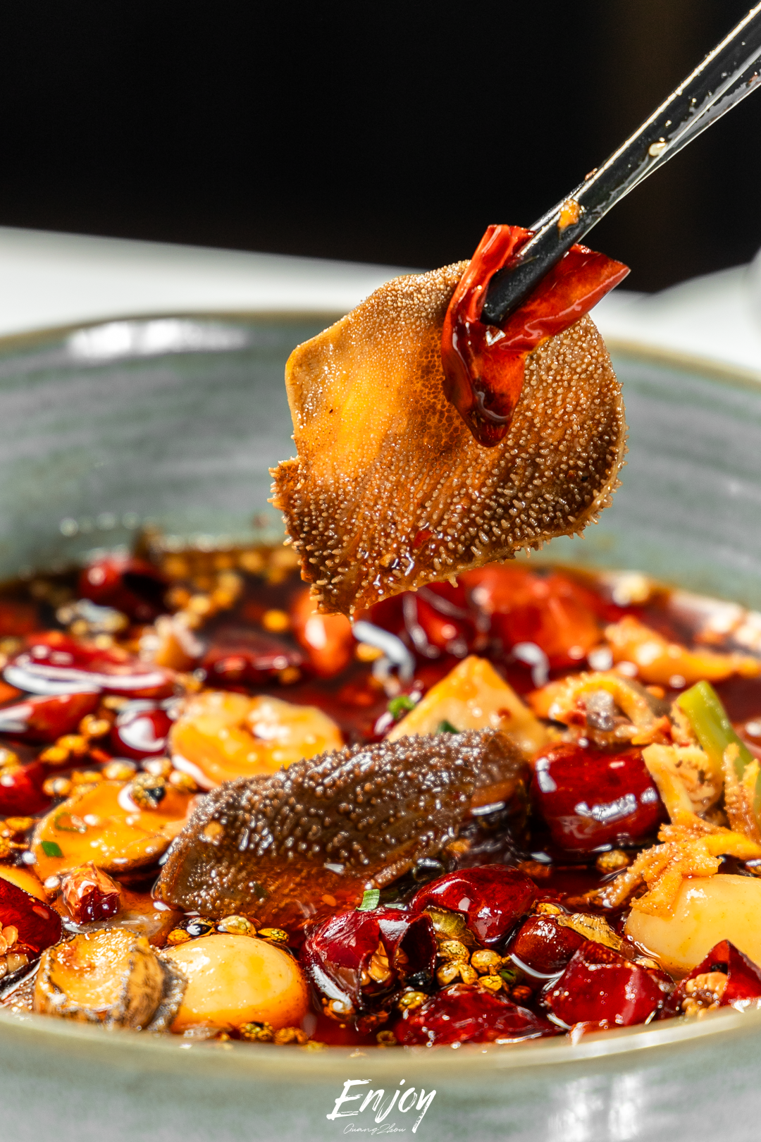 而鲍鱼海鲜毛血旺则勾起食客们对海洋鲜美与川味麻辣的双重遐想。巧妙地将鲍鱼、各式海鲜与传统毛血旺的麻辣鲜香融为一体,而毛血旺的精髓——麻辣红汤,则如同点睛之笔,热烈而不失分寸,辣椒与花椒的香气在口腔中肆意舞动,创造出层次丰富、味道独特的味觉盛宴。