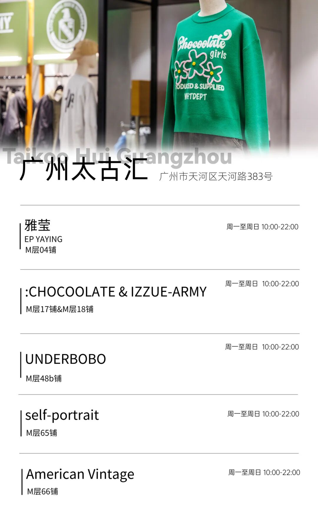 :CHOCOOLATE & IZZUE-ARMY的“线绣花卉logo针织衫”,采用柔软舒适的面料,触感如同春日里轻拂过脸颊的微风,既保证了穿着的舒适度,又兼具了良好的透气性和保暖性,适合广东冬季变化多端的天气。