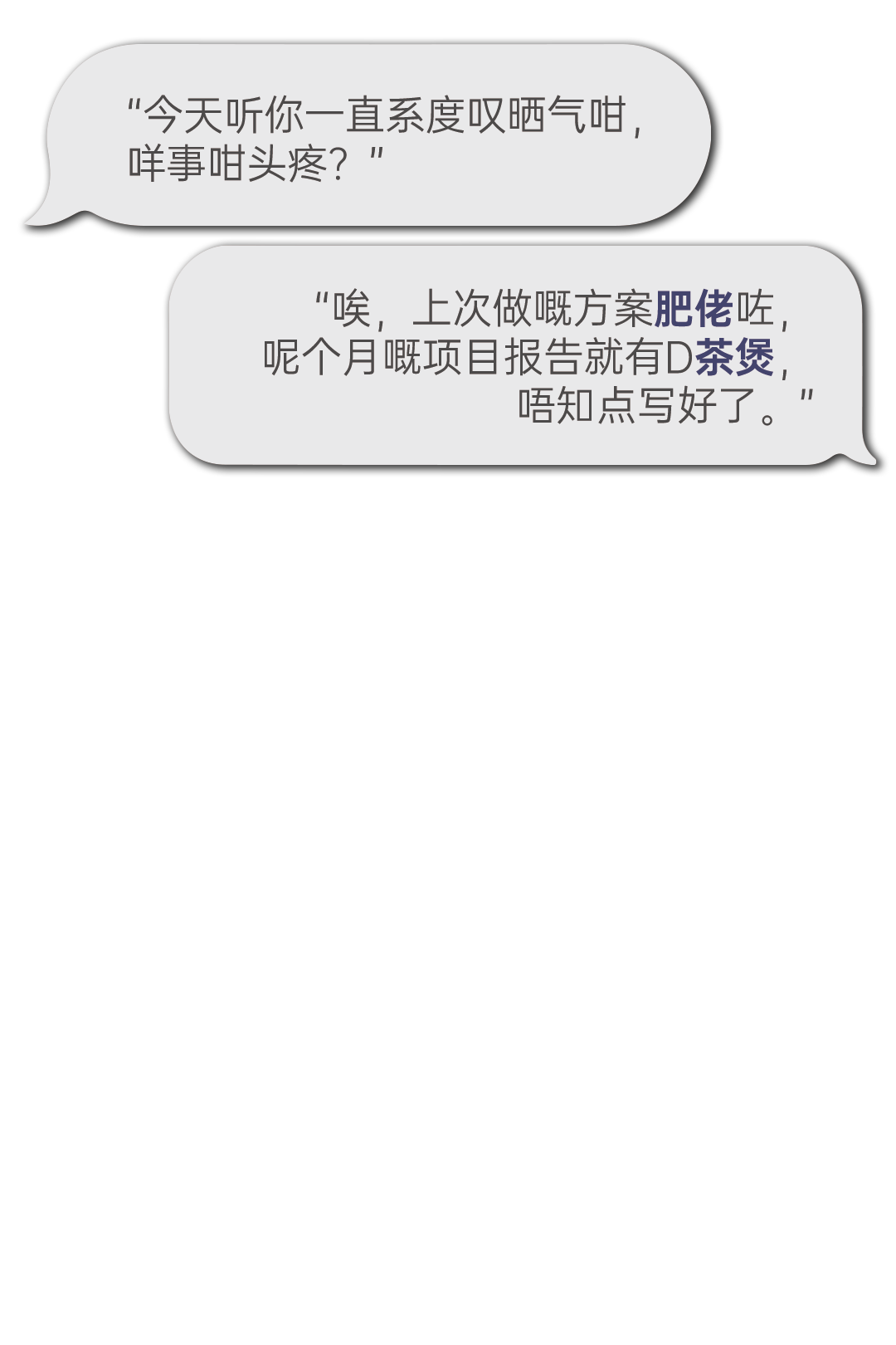 在广州太古汇1座写字楼大堂内,两位同事正在聊天: