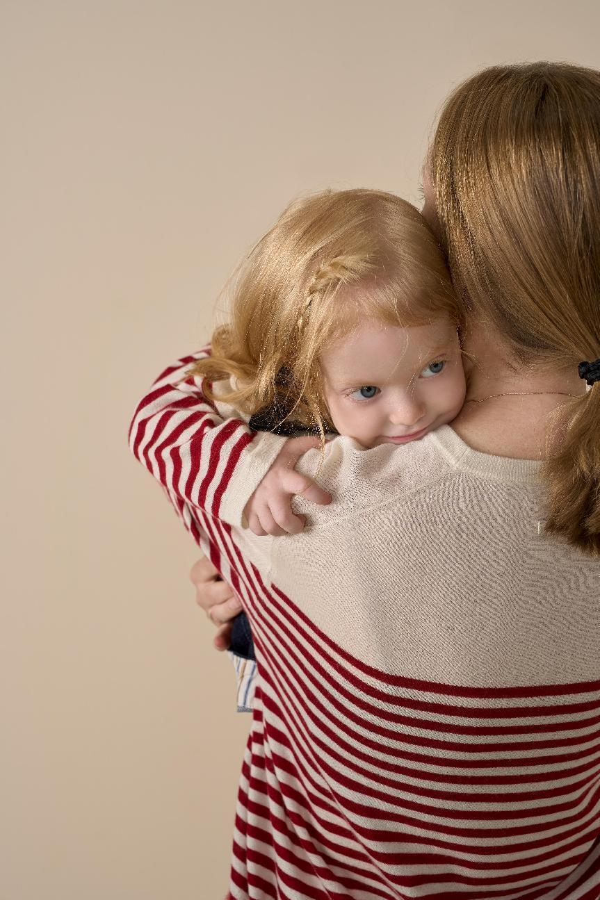 「鼠兔公仔提花毛衣」,采用进口澳洲70sSuperfine超精细美丽诺羊毛,宽松廓形的下摆开叉设计,保暖的同时让宝宝活动时更轻松自如;还有在细针奢华羊绒针织下打造的「精纺羊绒条纹衫(亲子款)」和「软糯彩点羊绒开肩毛衣」,精致工艺尽现奢华非凡的童真趣味。