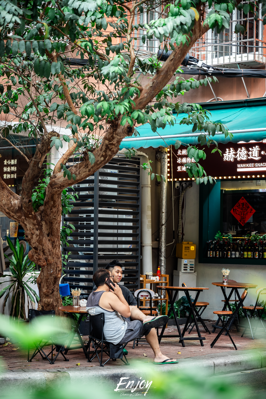 在这个全广州潮人含量最高的街区,随处可见的是拿着咖啡杯、自信拍照的潮人。而这里的咖啡店,亦带有浓烈的潮牌属性。复古美式和广式风格的融合,中式国潮风与冷灰调水泥工业风的冲击,不同特色的咖啡店同街而立,化身为自带独特美学和设计感的天然的拍照“背景板”。