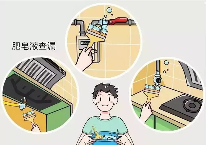 可以在怀疑有漏气的地方(胶管、接口处、管道、旋塞阀等) 抹点肥皂水,如果有漏气,肥皂水会出现气泡或鼓起现象。
