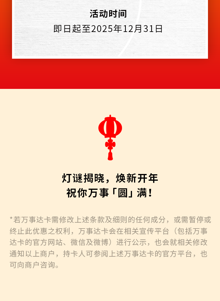 摘要:趣味猜灯谜,万事达卡出行、酒店、购物等多样礼遇等你解锁!