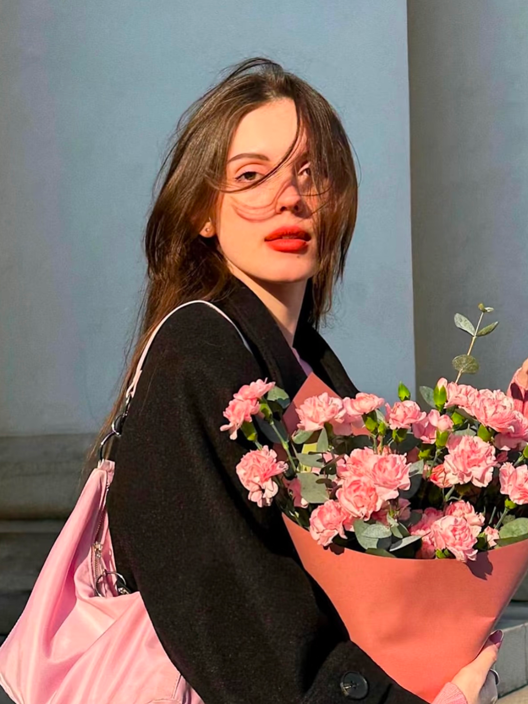 卢昱晓的妆容自然明媚中透露着温婉,红润的腮红巧妙地提升了气色,与淡妆搭配得恰到好处,粉红色的腮红与口红更是增添了几分柔美与魅力。完美诠释情人节的浪漫氛围。