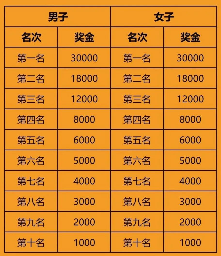 注:2023年女子记录2024年无人打破,因此本届赛事女子破赛会记录奖金池累计为20000元。