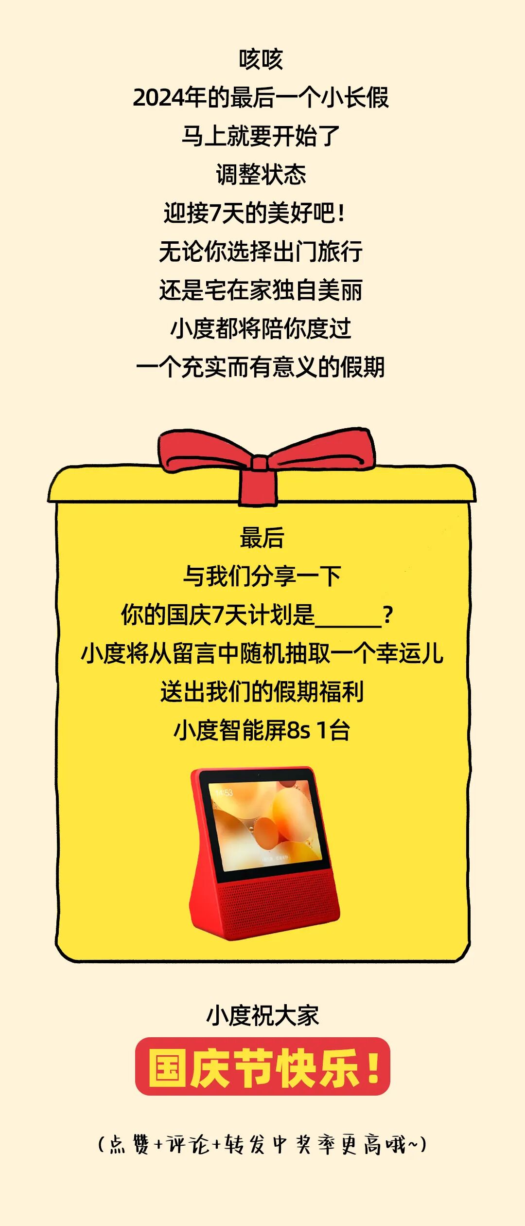 摘要:小度祝大家国庆节快乐
