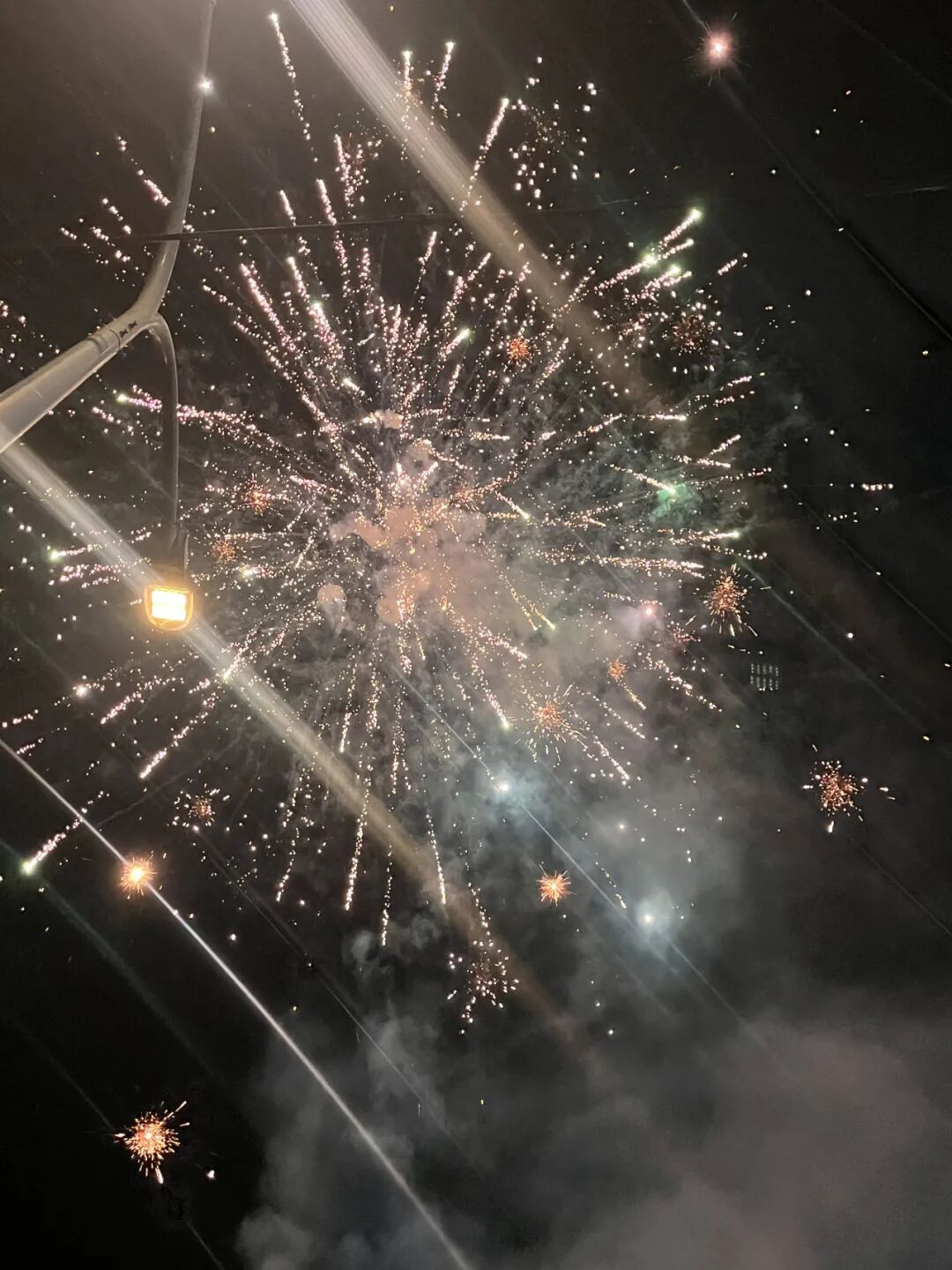 倒计时结束,第一束烟花划破夜空,绚烂如流星。随后,五彩斑斓烟花的腾空绽放,似漫天星辰,点缀得夜空如梦如幻。