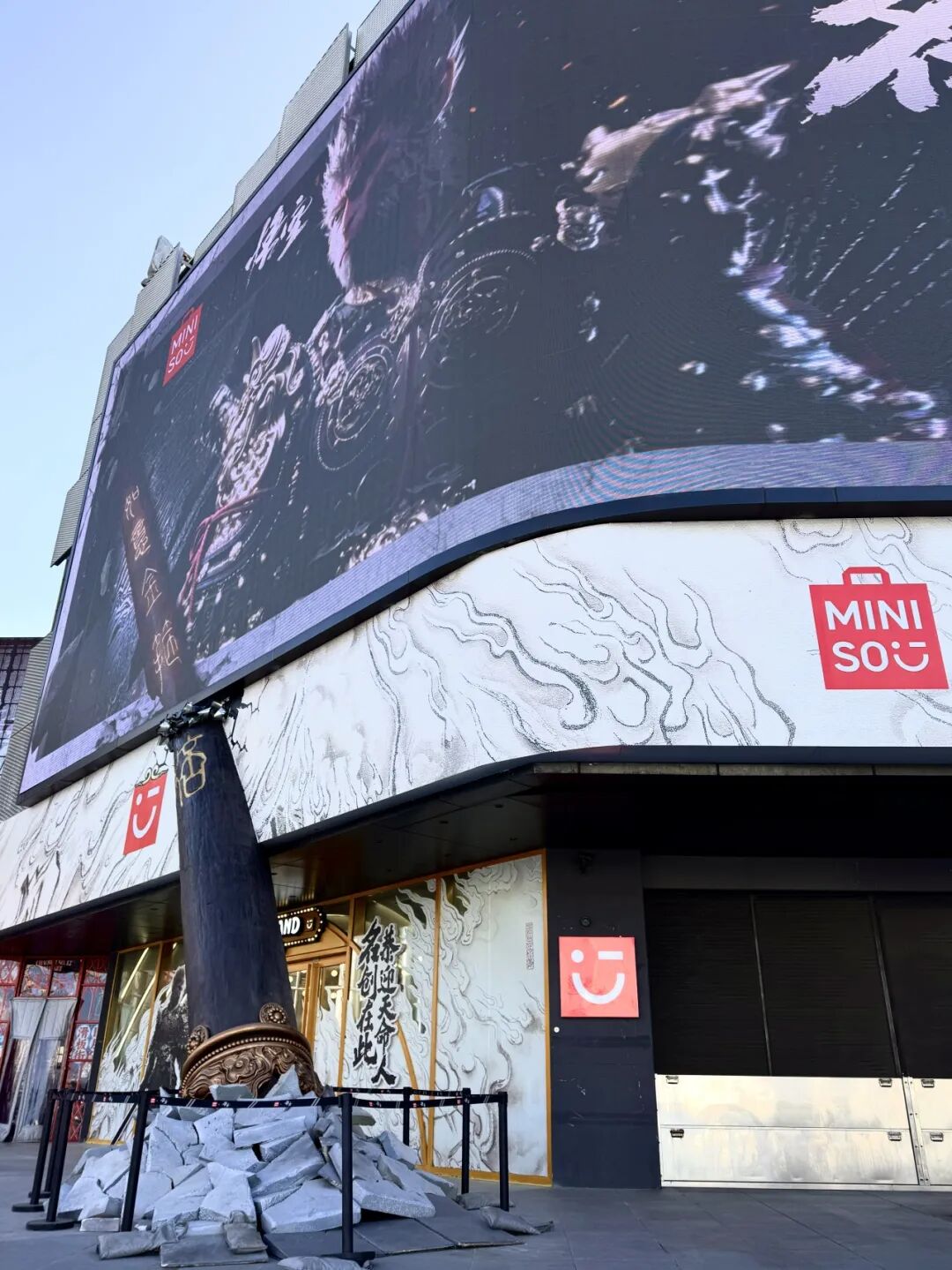 新年伊始,MINISOLAND 北京壹号店亮相朝外,并在开幕当天上架《黑神话:悟空》IP联名商品,店内氛围装饰还原了游戏场景,拍照打卡的粉丝络绎不绝。