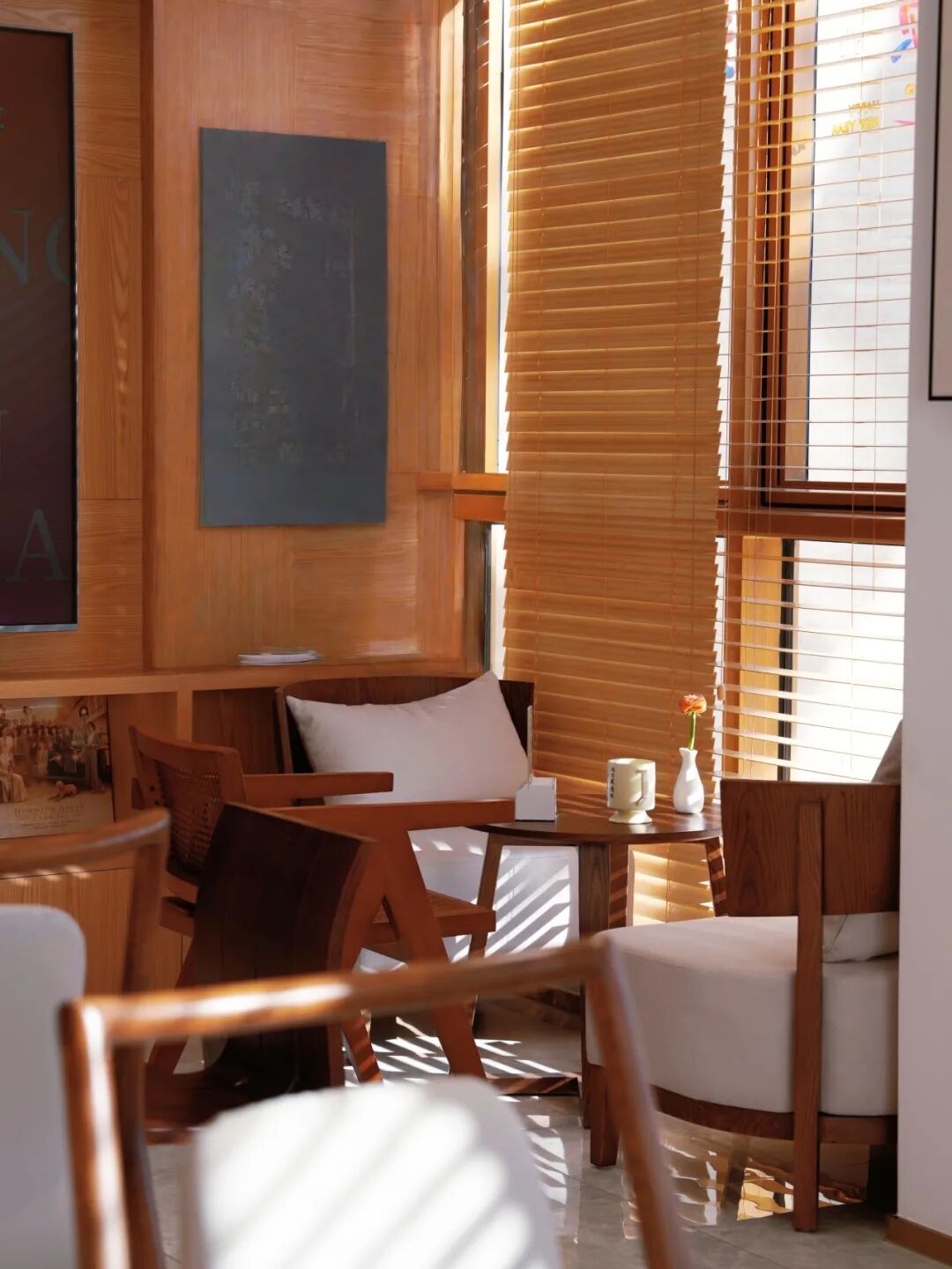 不规则线条的长桌,大色块与小白砖的桌面,拍照氛围十足。等暖春一来,相信这里的人气更旺,景色更美。