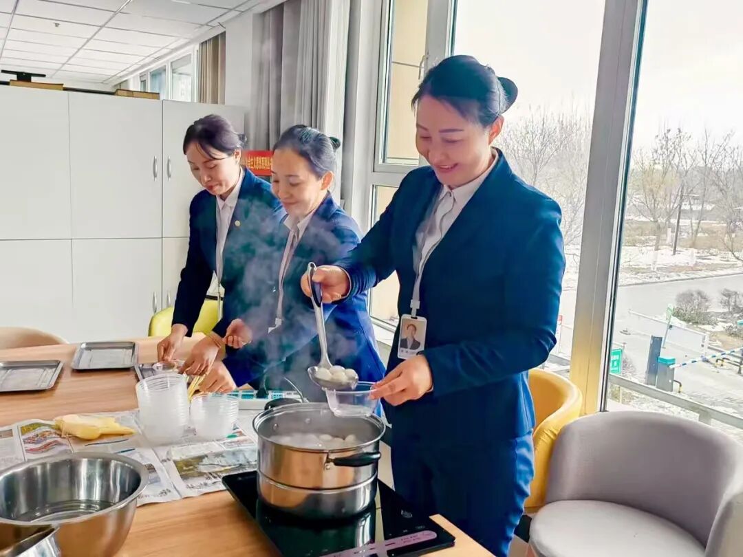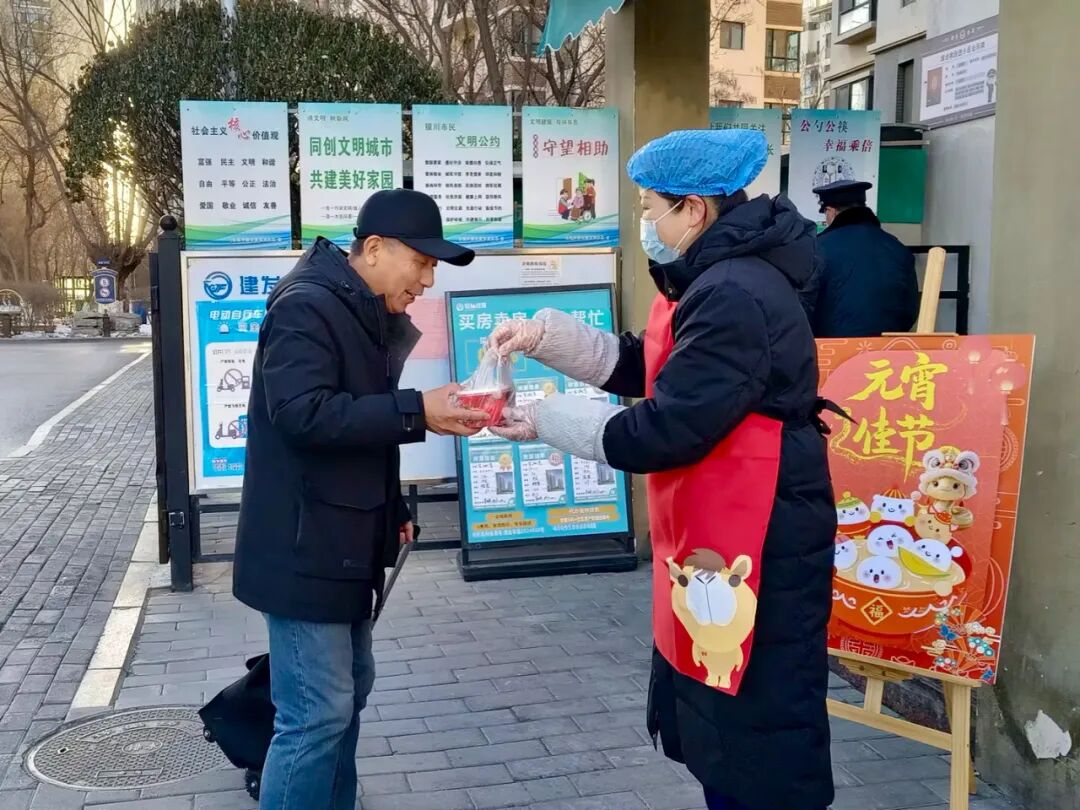 大家齐聚一堂,共同开启一场温馨的包汤圆、送温情活动。现场,大家围坐一团,双手灵活地舞动,揉面、包馅、搓汤圆,动作一气呵成,欢声笑语回荡在每一个角落。热气腾腾的汤圆煮好后,工作人员细心地分杯装好,将它们送到业主手中,用实际行动传递着节日的温暖与关怀。“最近不太方便出门,家里正没买元宵呢,你们包的元宵软糯香甜,味道可真好!谢谢你们,物业的服务太贴心啦!” 一位业主从幸福管家手中接过元宵,满是感激地说道。