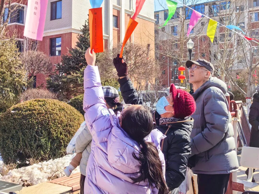 活动现场,项目邀请了数位非遗传承人,在展示区内摆满了琳琅满目的非遗手工艺品。从精美绝伦的剪纸艺术,到巧夺天工的皮影作品,再到色彩斑斓的刺绣织物,每一件作品都凝聚着匠人们的心血与智慧,引得众多业主纷纷驻足围观。同时围绕文学、科学知识精心准备的灯谜,谜面丰富多样,业主们或独自思考,或三两成群热烈讨论,在愉悦的氛围中,不仅收获了知识,更感受到传统文化的博大精深。一位业主兴奋地说:“这种形式太棒了,一边玩一边还能学到新知识,太有意思啦!”
