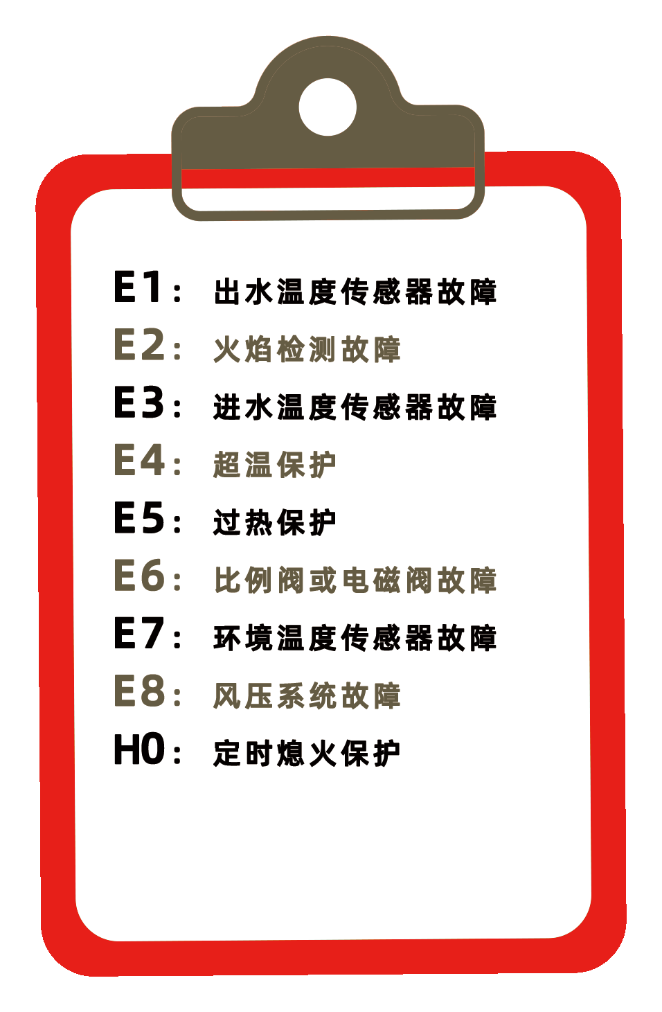 附上常见的故障信息代码(即热水器故障停机,屏幕显示的代码):