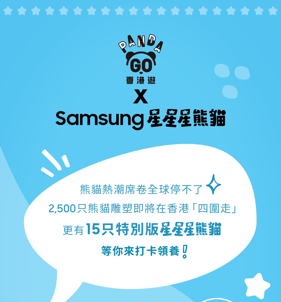 摘要:全球限量 15 只「特別版 PANDA GO!香港遊 x Samsung 星星星熊貓」\x0a快來參與有獎遊戲,把星星星熊貓寶寶領回家!